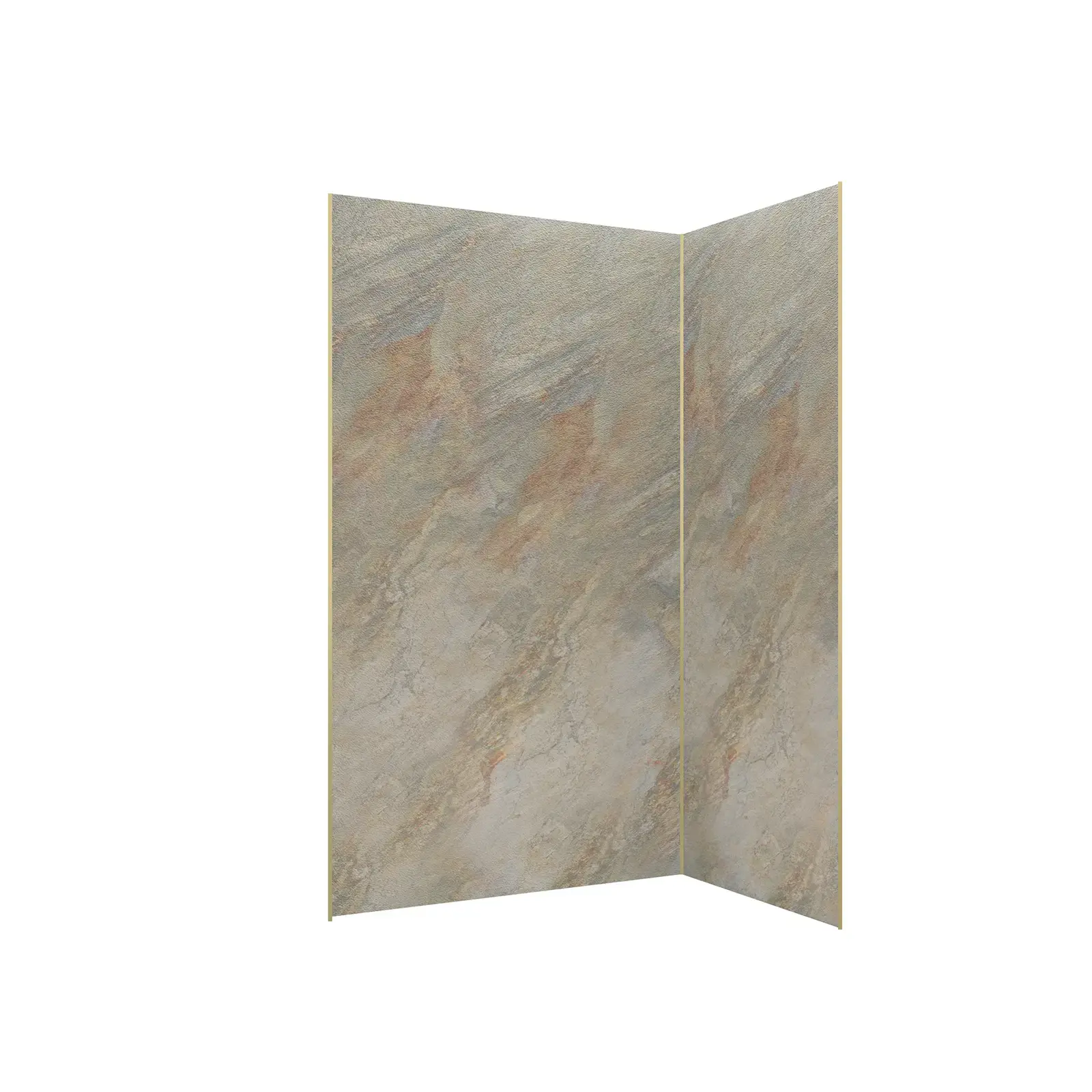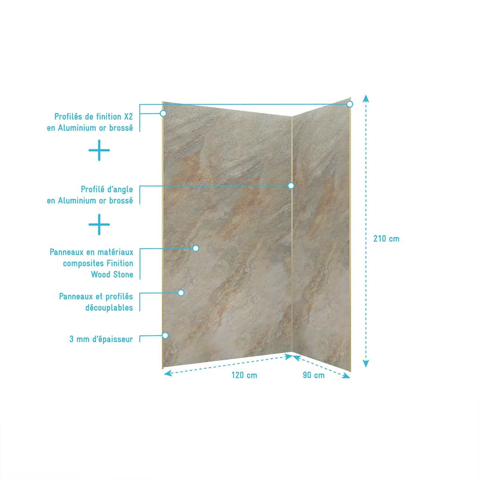 Pack 2 Panneaux Muraux Pierre Wood Stone 120+90×210 cm + Profilés Finition et Angle Or Brossé