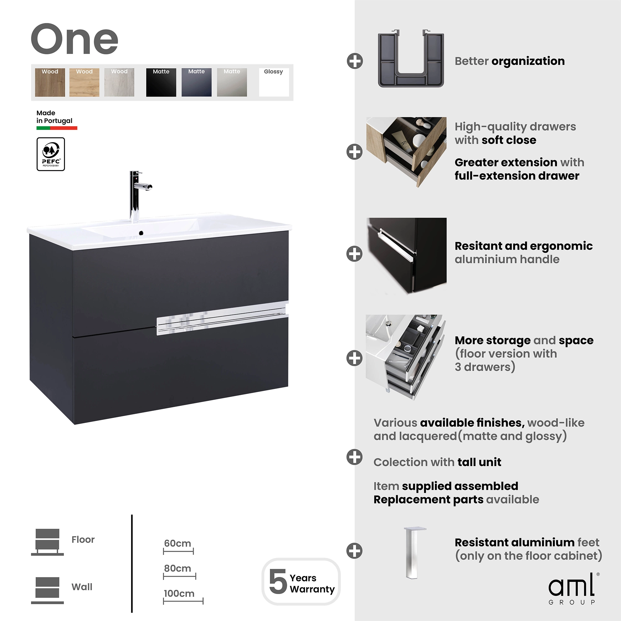 Fabriqué avec des matériaux certifiés PEFC, ce meuble allie qualité et durabilité. Les poignées en aluminium et la vasque en céramique blanche sont conçues pour résister au temps, offrant une finition soignée et une solution durable pour une salle de bains stylée et fonctionnelle.