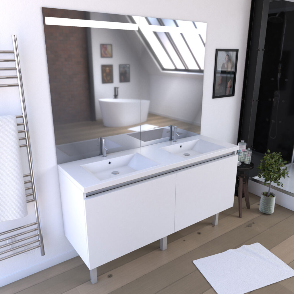Un meuble salle de bain 130 cm en MDF hydrofuge ou mélaminé haute densité est conseillé.