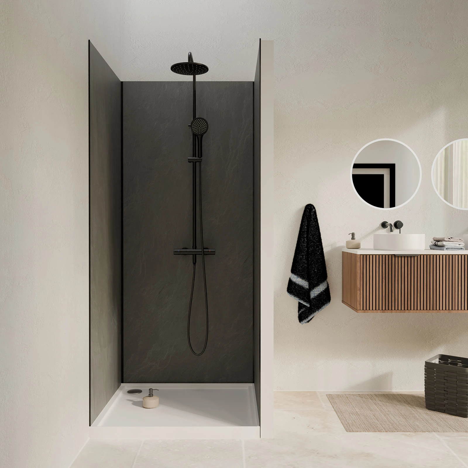 - Et le panneau mural douche en pierre est idéal pour créer une ambiance naturelle, premium et durable.