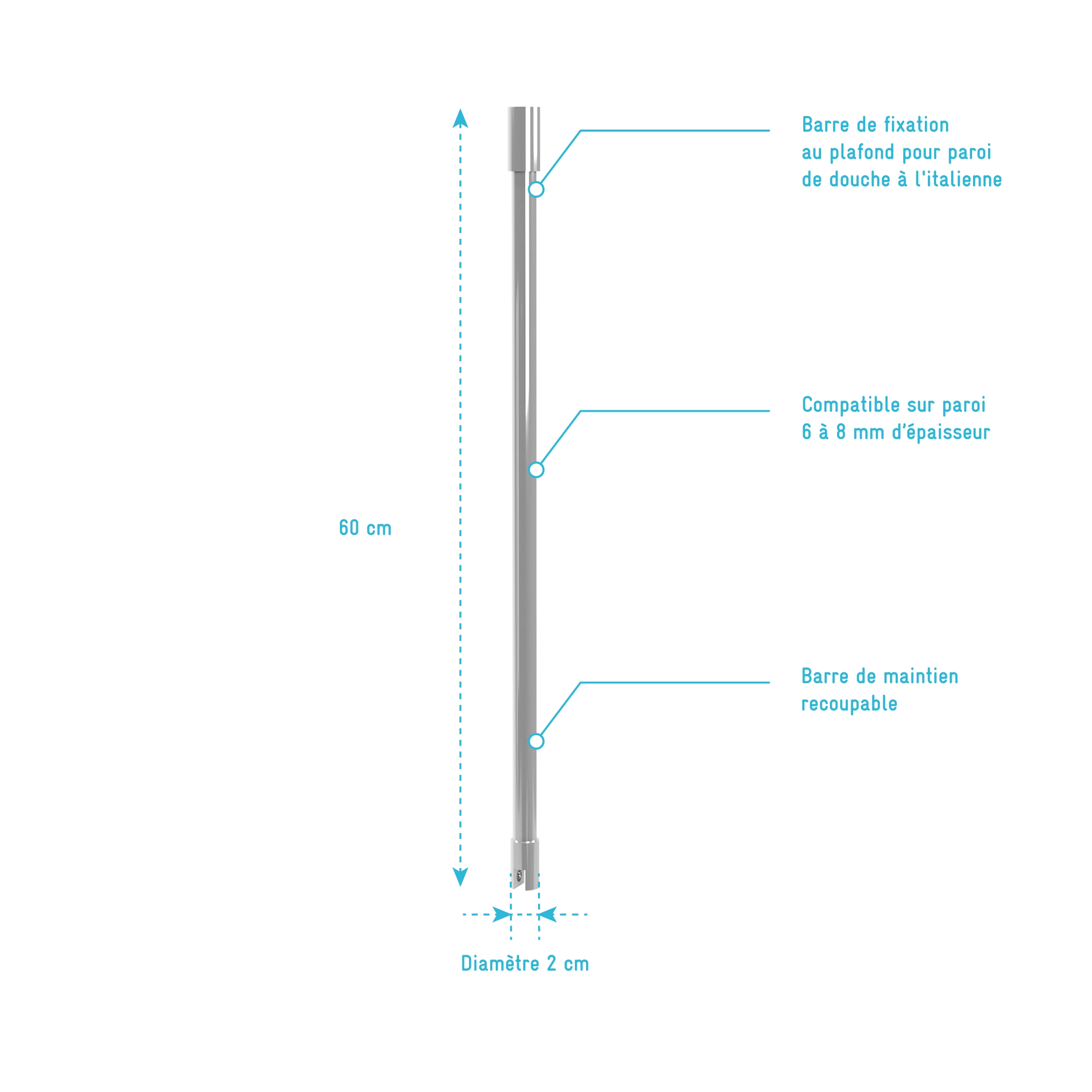 - Barre de fixation au plafond pour paroi de douche à l’italienne