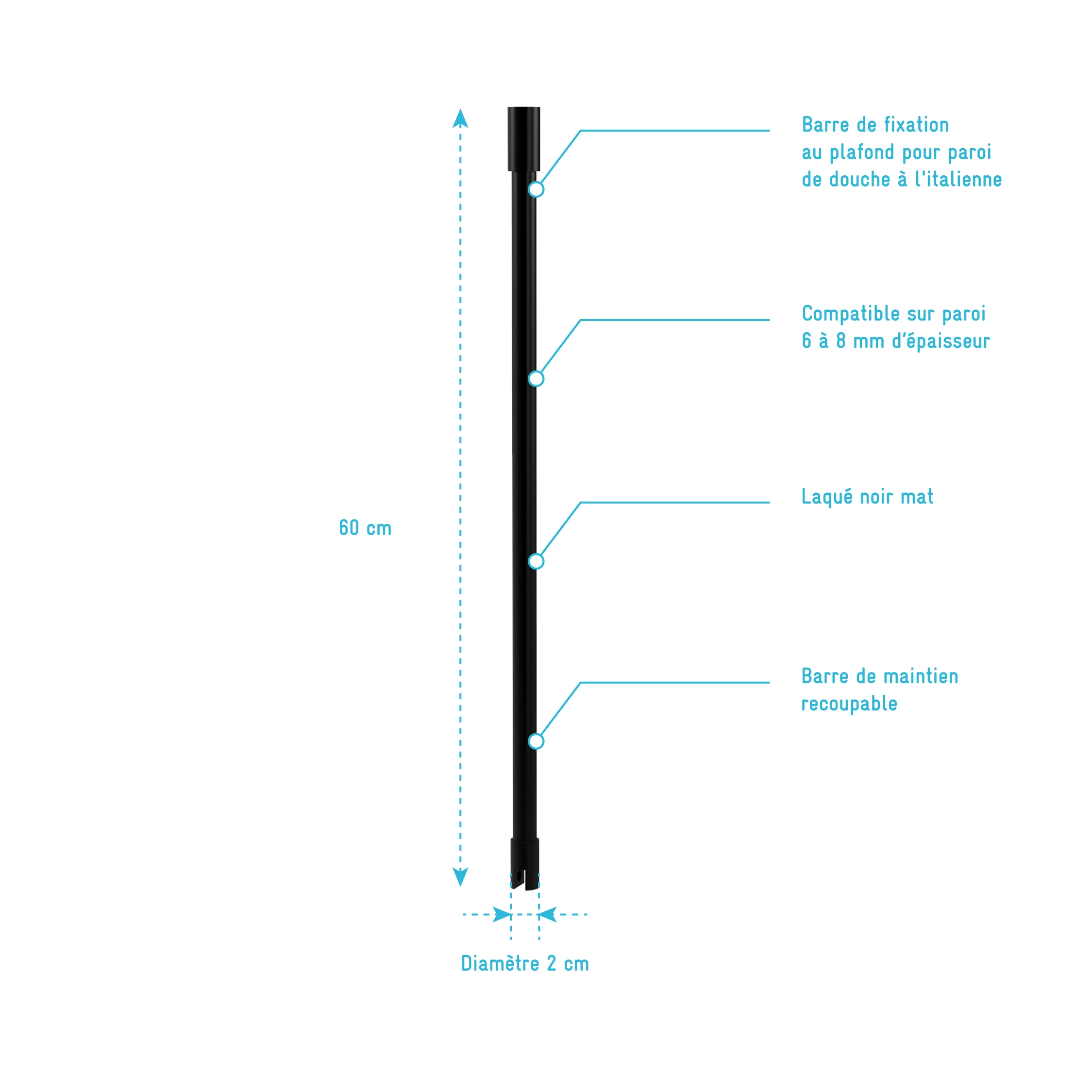 9 avis pour Barre de fixation plafond pour douche a l’italienne laque NOIR MAT – 60cm RECOUPABLE