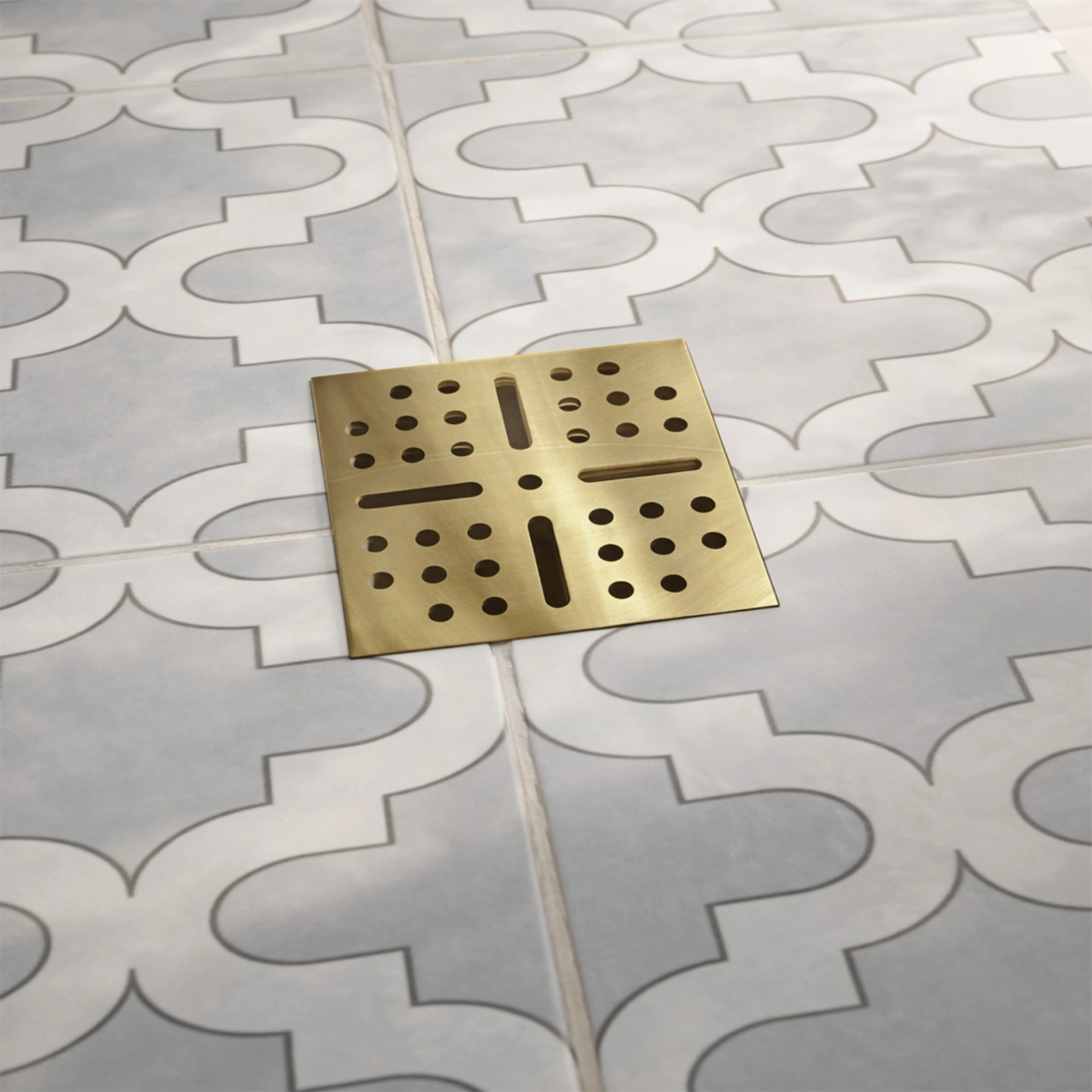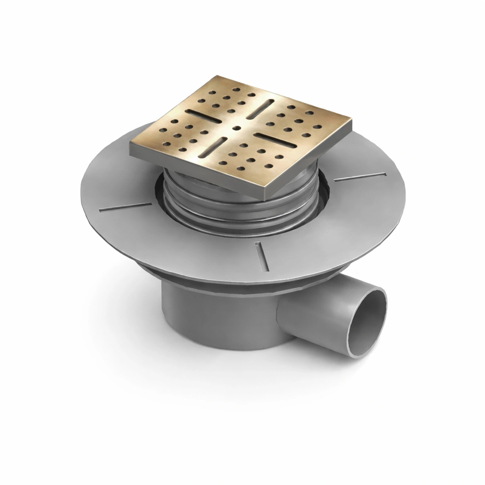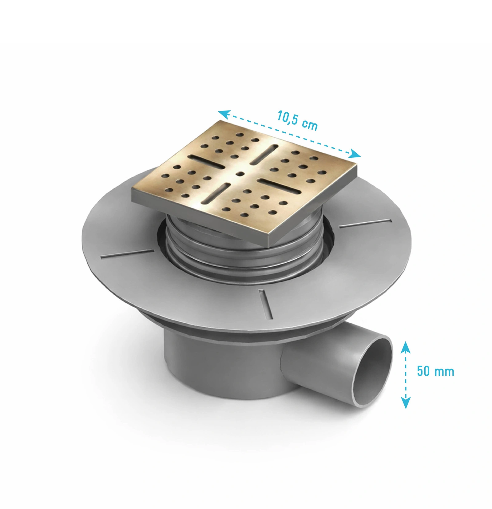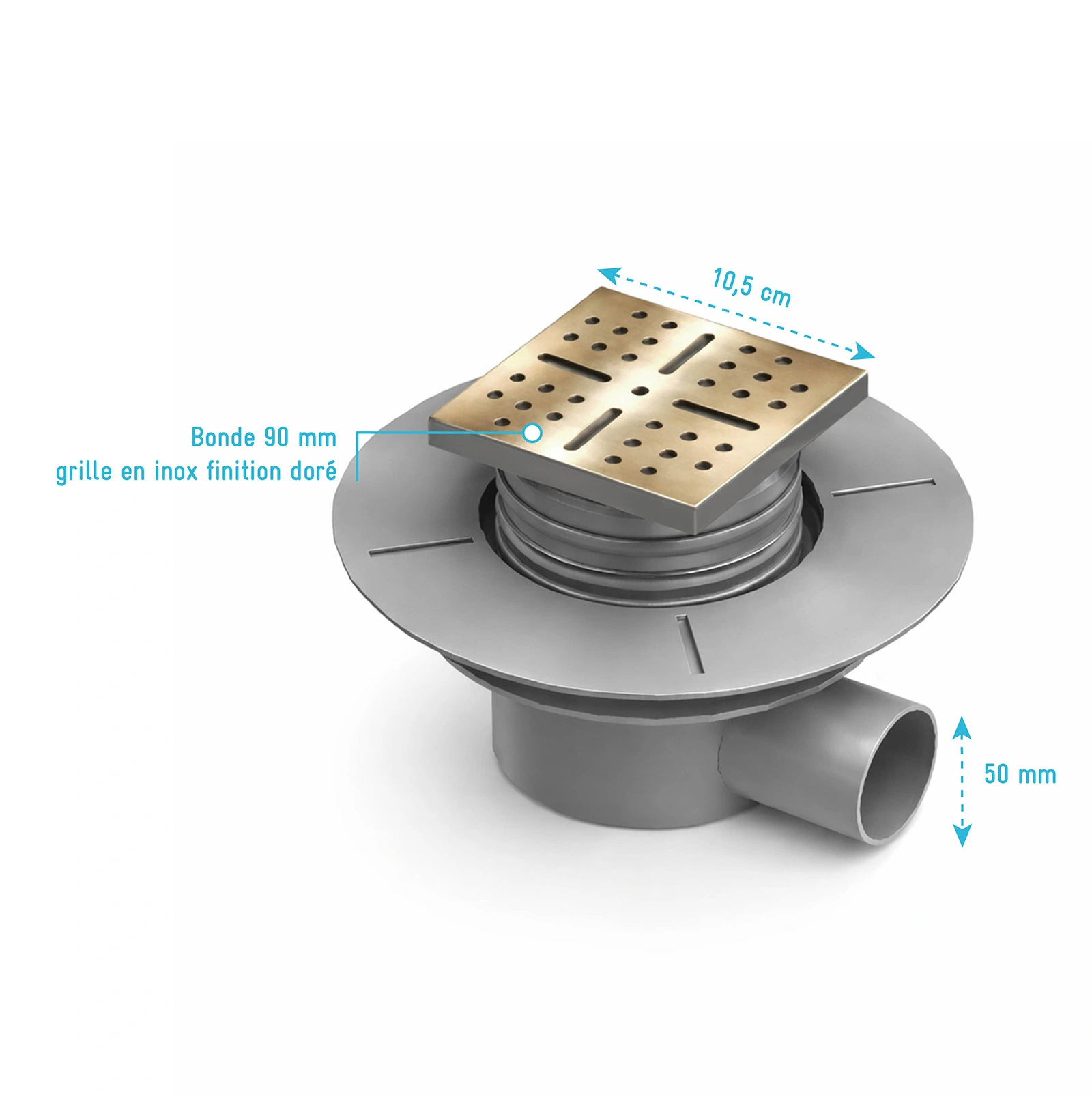 Bonde à sortie HORIZONTALE pour receveur à carreler RAINY – Grille Inox Dorée
