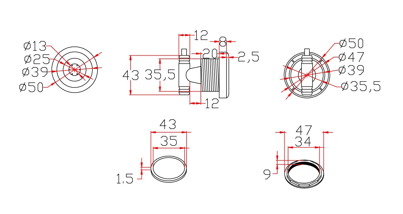 0 avis Buses de circuit simple de diamètre 36mm et à tête anticalcaire