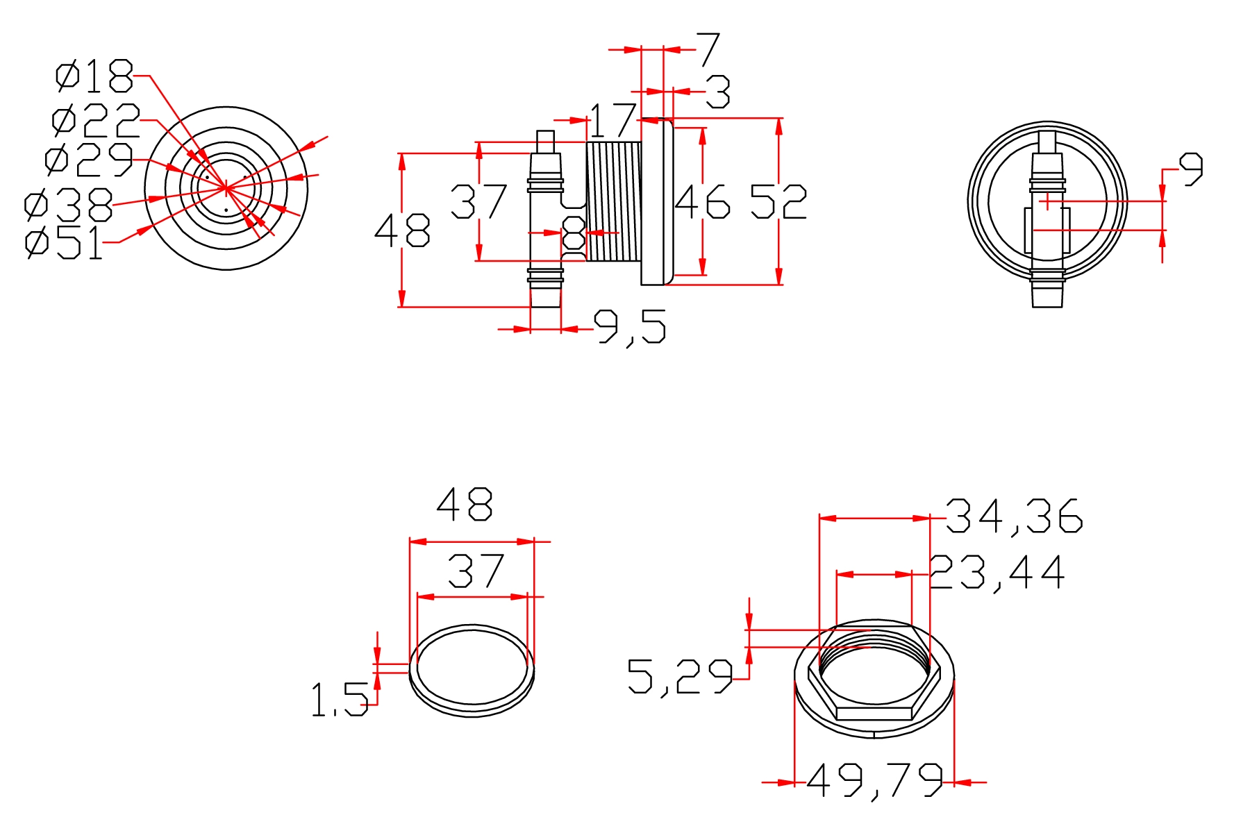 0 avis Buses de circuit simple de diamètre 36mm et à tête anticalcaire