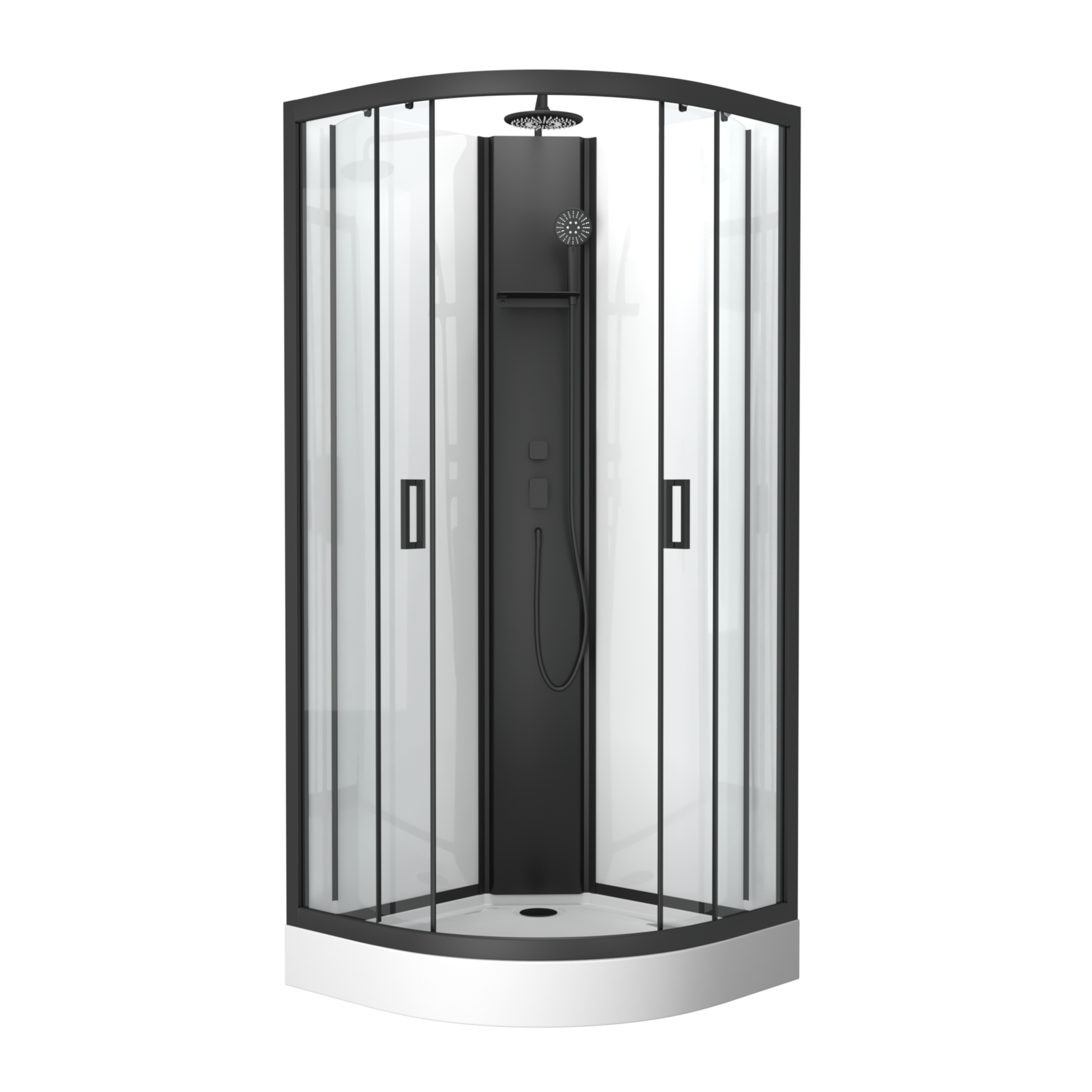 5 avis ELEMENTARY Cabine de douche 1/4 de cercle 85x85x200 cm - Portes coulissantes - Receveur Noir Mat