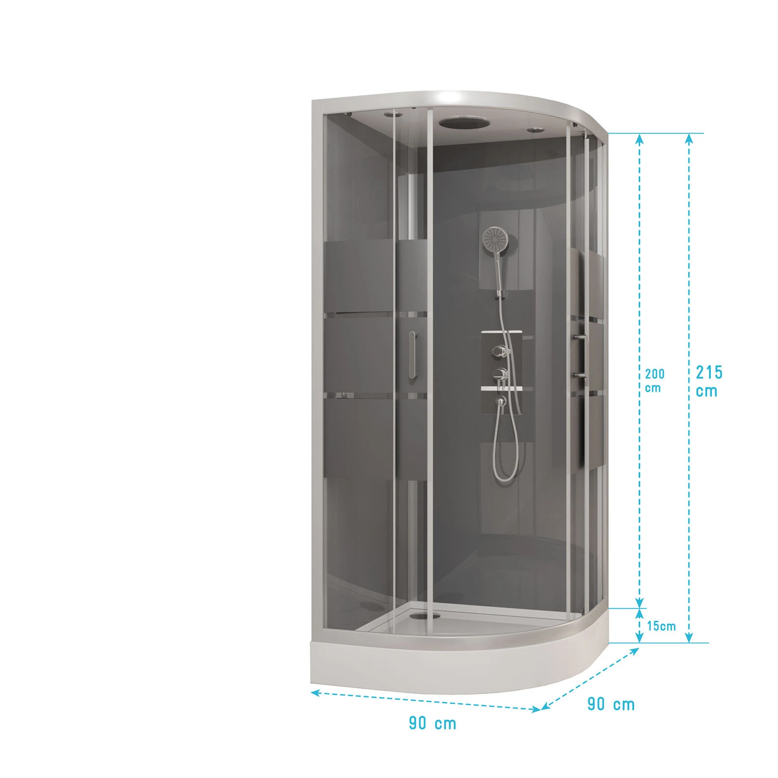 3 avis pour Cabine de douche 1/4 de cercle 90x90x215cm avec bande depolie – SILVERY STRIPE ROUND