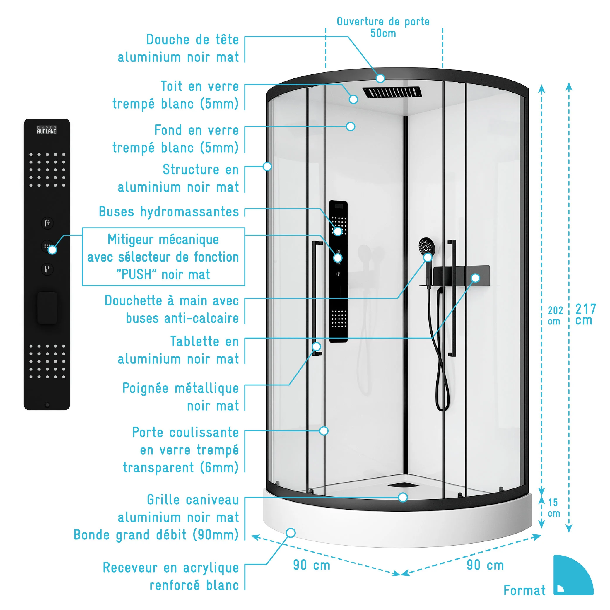 4 avis pour Cabine de douche 1/4 de cercle ROND – 90x90x217cm – FACTORY 2 ROUND