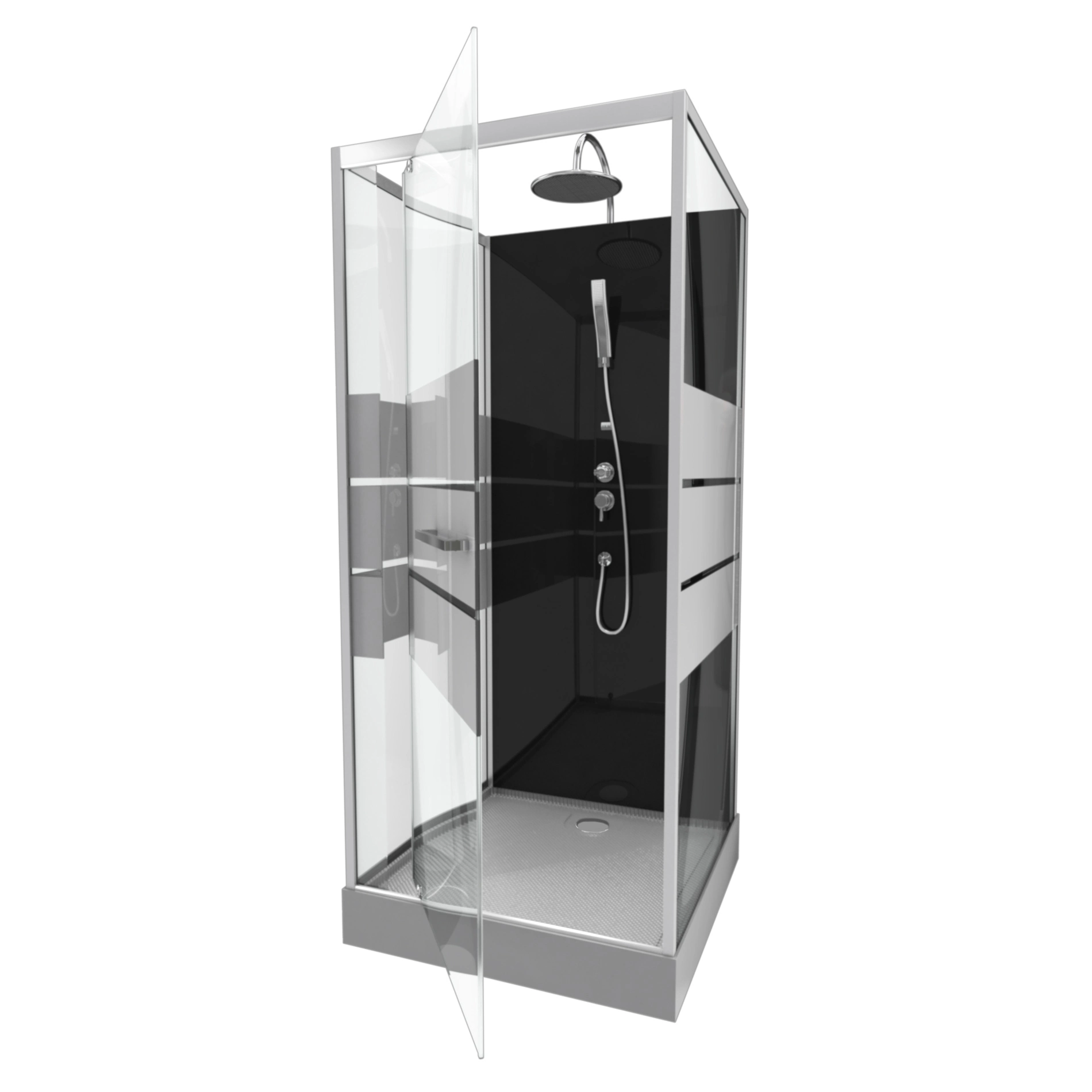 Cabine de douche Carrée Hydro 90x90x218 cm - Porte Pivotante - Fond & Profilés Noir Mat