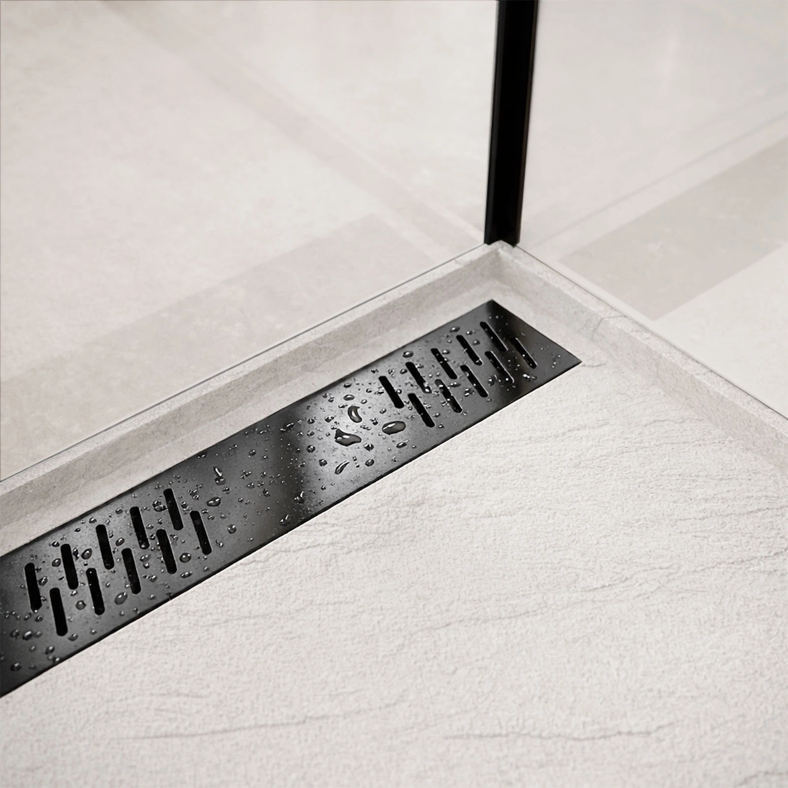 - Bonde 90 mm avec grille linéaire en aluminium noir mat