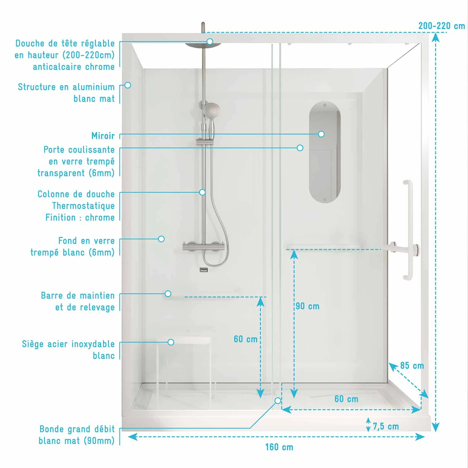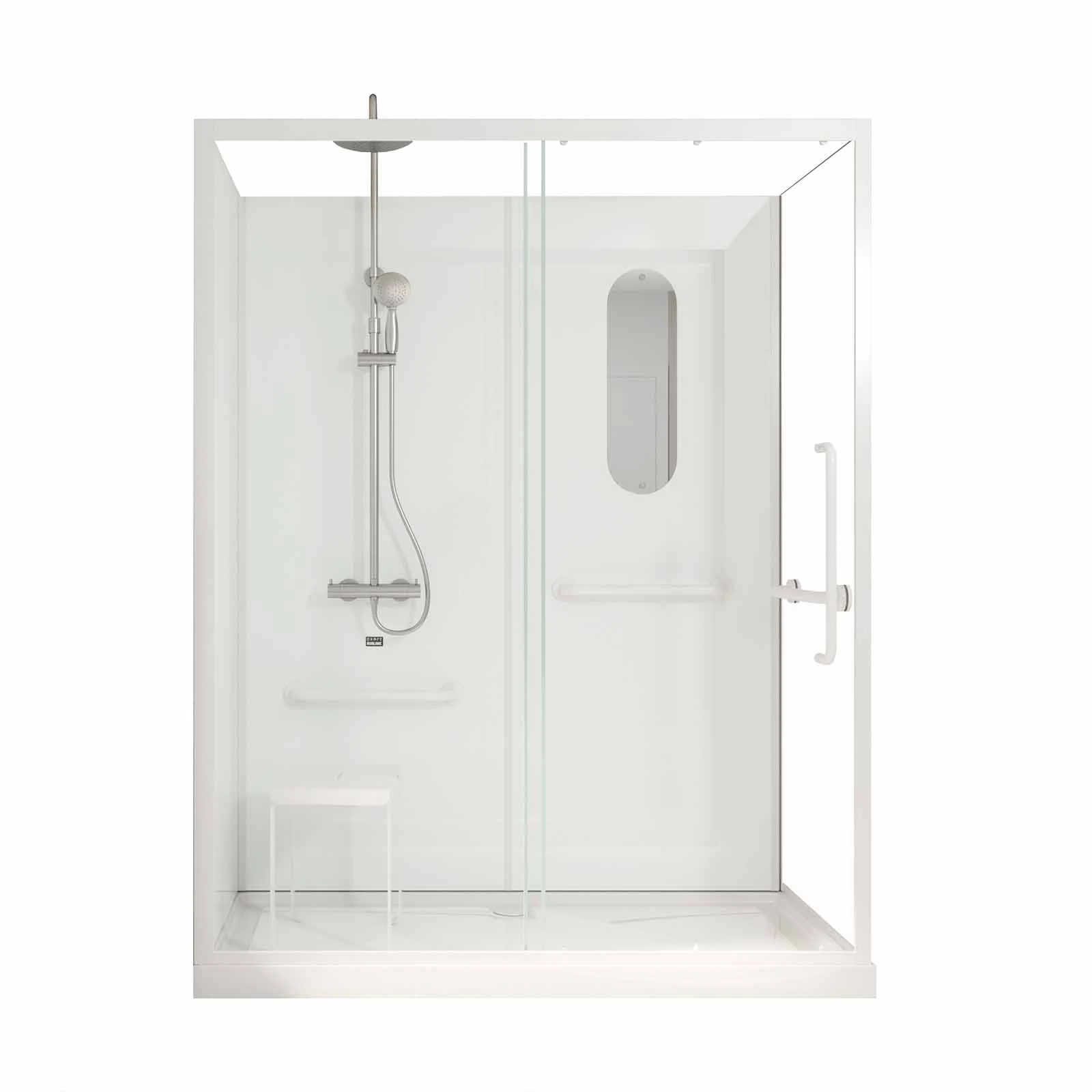 Cabine de douche blanche sécurisée et accessible à tous 160x85x220cm - Mitigeur Thermostatique