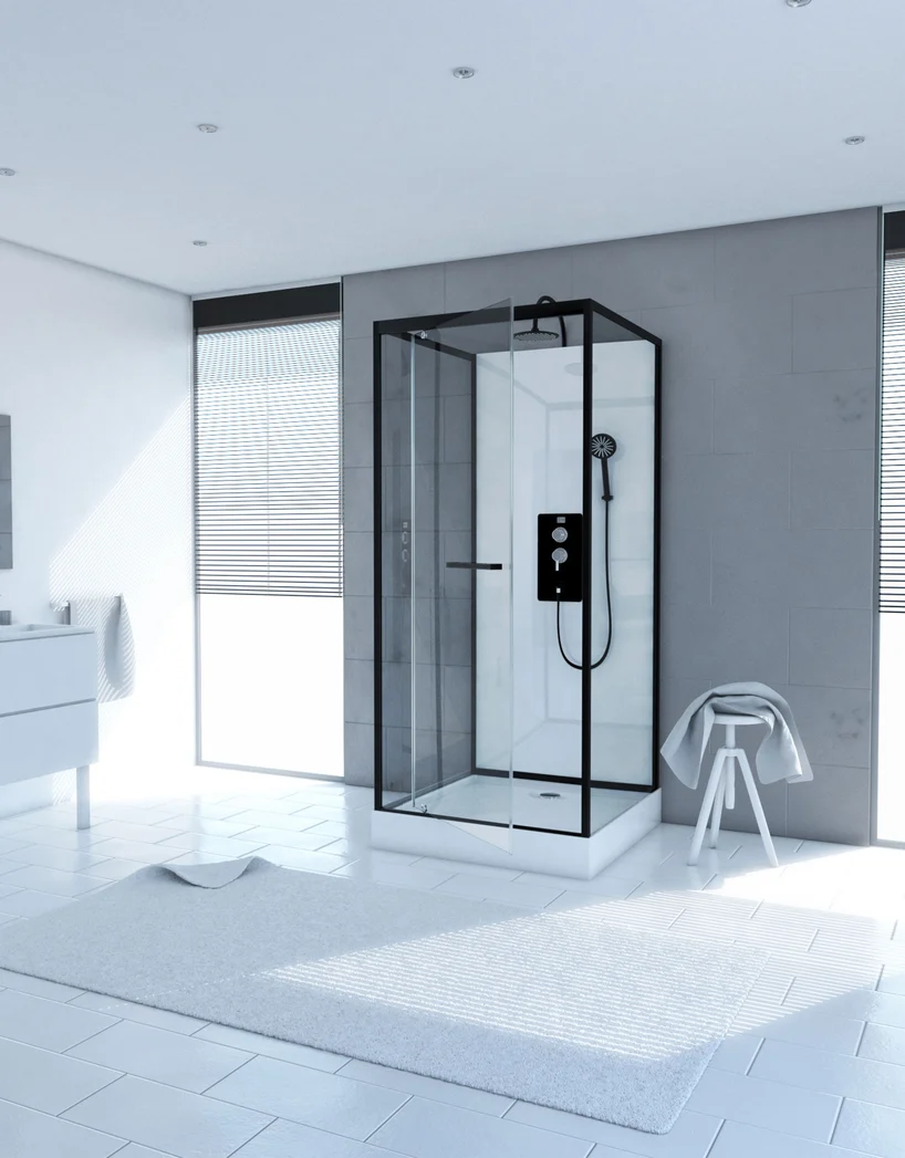 Cabine de douche carrée 80x80x230cm – extra blanc et profilé noir mat – LUNAR SQUARE 80