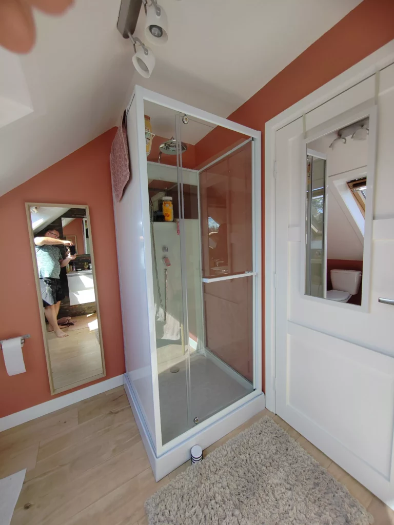 Découvrez le confort au quotidien avec notre cabine de douche blanche au design minimaliste, équipée d’un miroir intégré.