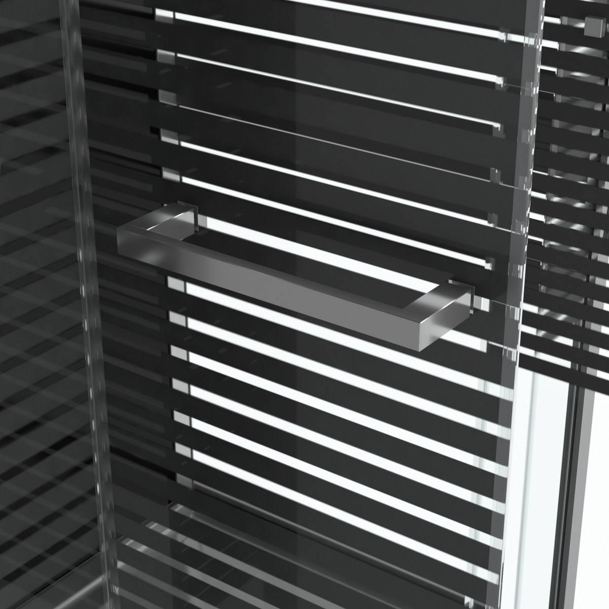 - Porte pivotante en verre trempé (5mm) avec lignes sérigraphiées grises anthracites
