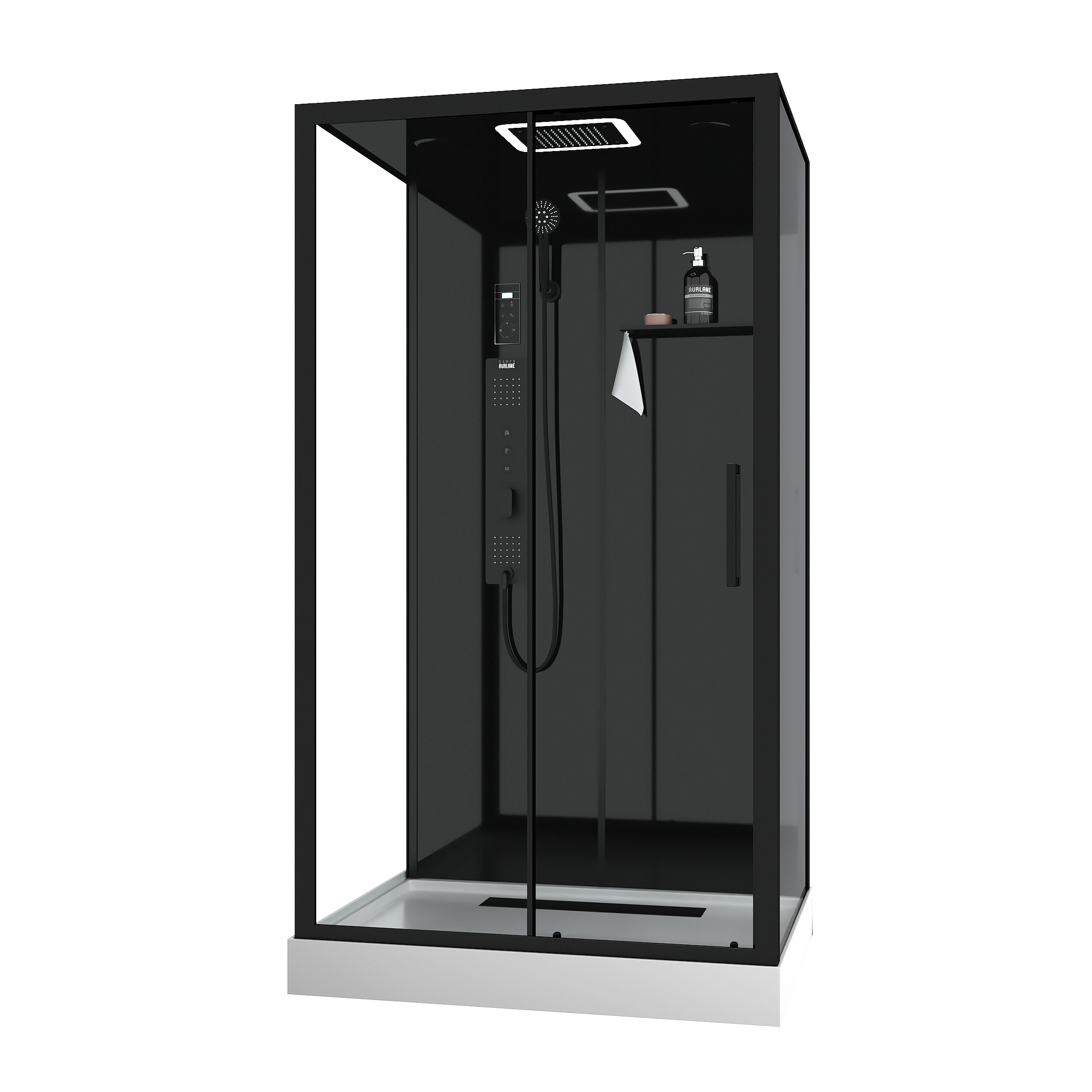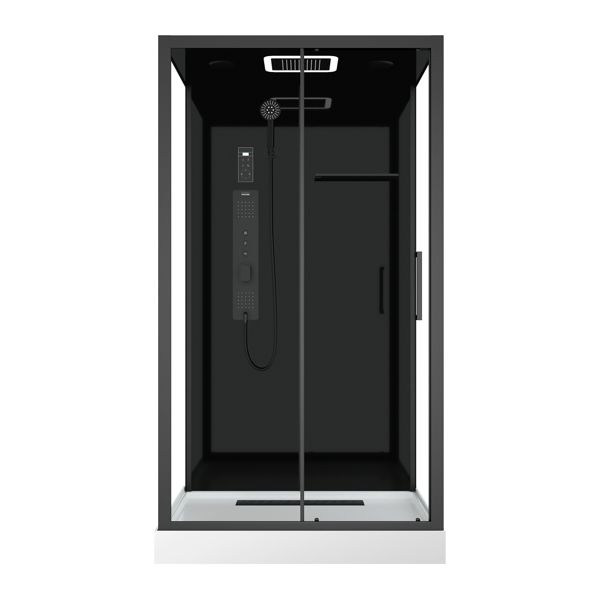 Cabine de douche Hydromassante 115x90x218 cm – Porte coulissante – Fonds & Profilés Noir Mat
