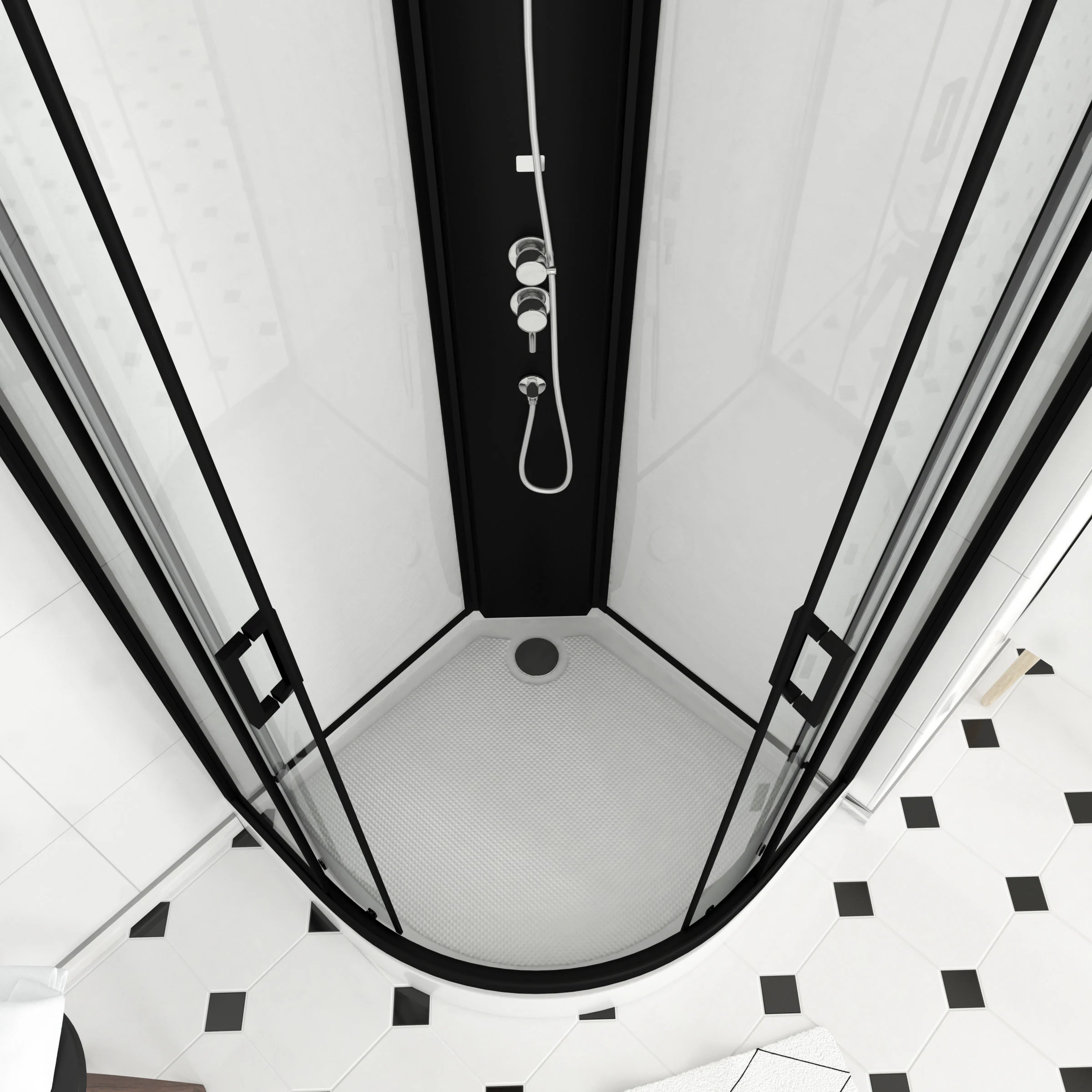 Cabine de douche 1/4 de cercle 85x85x200 cm - Portes coulissantes - Fonds Blancs & Profilés Noir Mat
