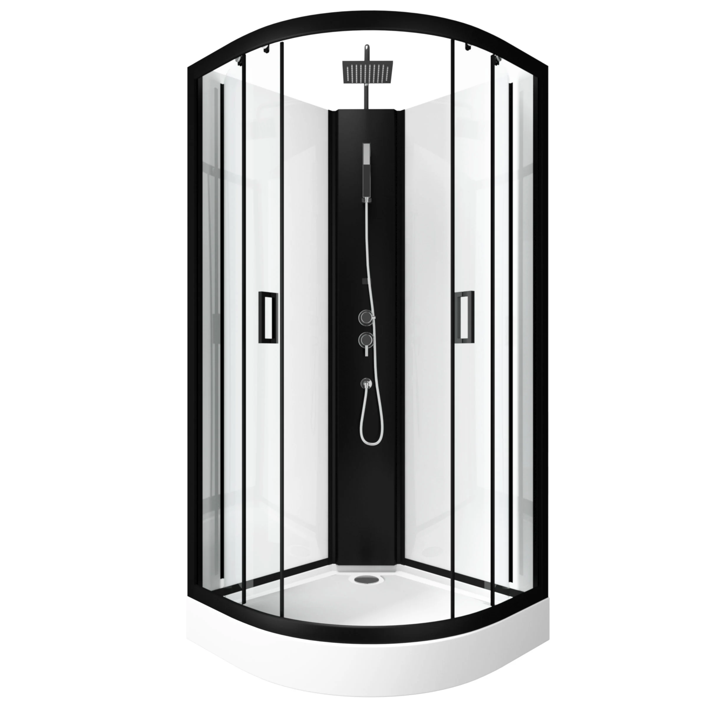 Cabine de douche 1/4 de cercle Hydro 95x95x215 cm - Portes coulissantes - Fonds & Profilés Noir Mat
