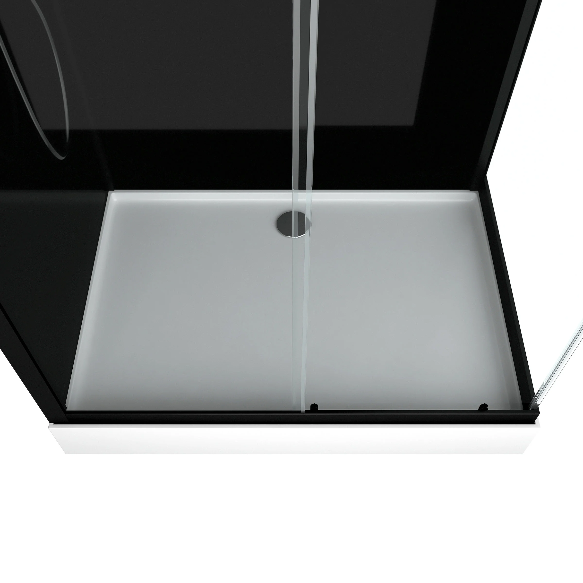 Cabine de douche rectangulaire 110x80x197 cm - Porte coulissante - Fonds Blancs & Profilés Noir Mat