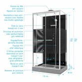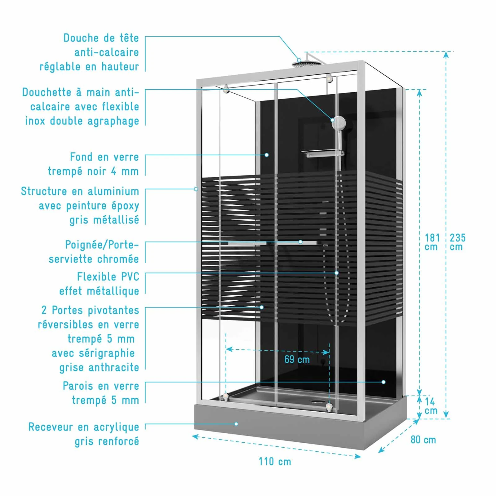 Cabine de douche rectangle 110x80x215cm – Portes pivotantes – Lignes grises anthracites – SCRATCHY 2