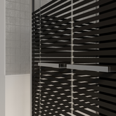Transformez votre salle de bain en un espace contemporain avec cette cabine de douche au design noir et gris raffiné. Son fond noir et ses lignes sérigraphiées grises anthracites protègent l’intimité tout en créant un jeu graphique subtil et contemporain.