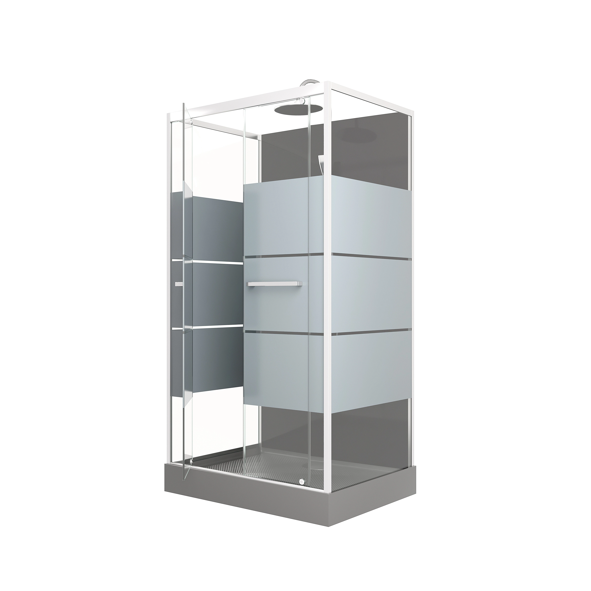 PLUS PRODUIT: La cabine de douche SCRATCHY chromée est dotée de deux portes en verre trempé de 5mm avec une sérigraphie de bandes grises. Le plus : la poignée porte serviette. Garantie 2 ans pièces et non main d’oeuvre.