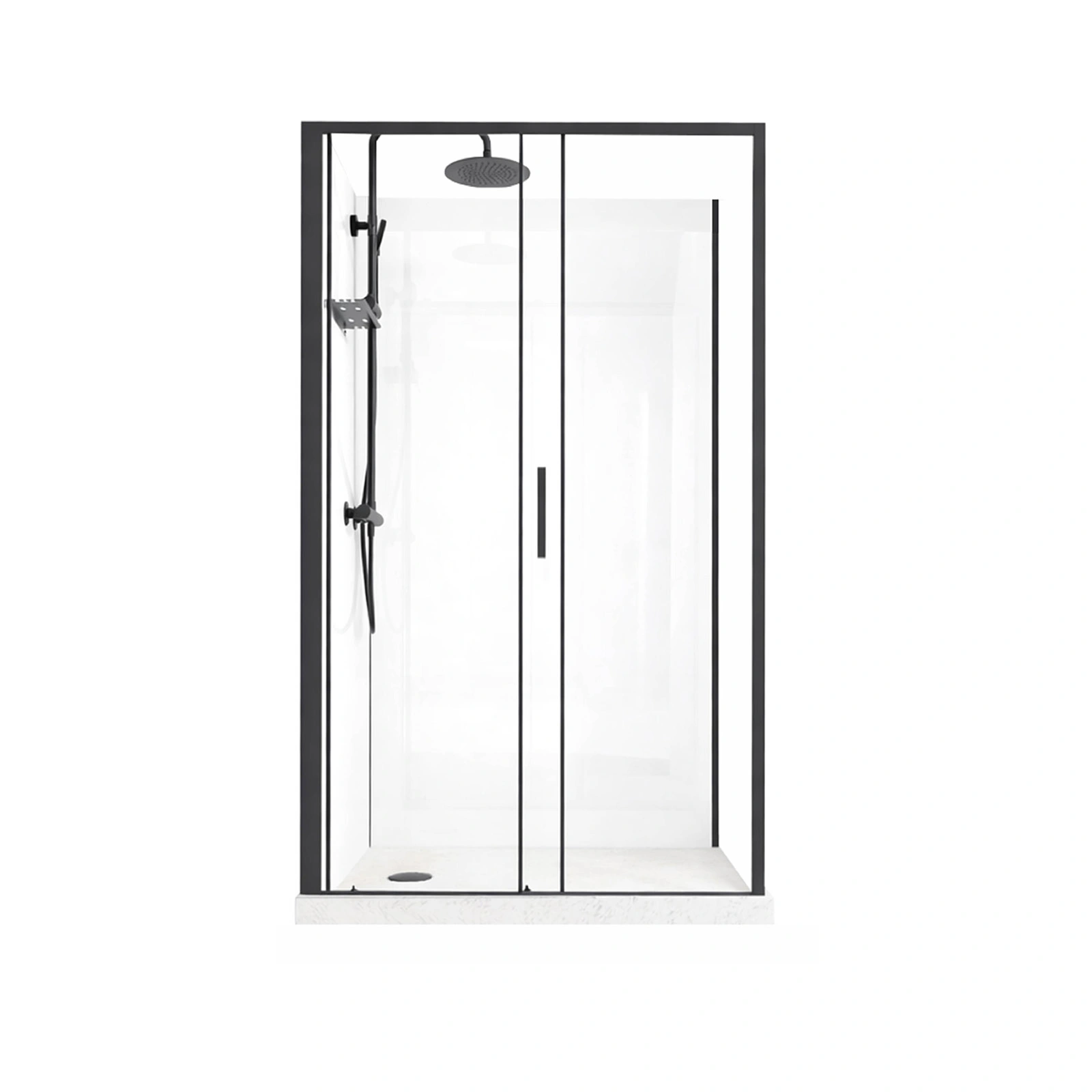 Cabine de douche rectangulaire 110x80x197 cm - Porte coulissante - Fonds Blancs & Profilés Noir Mat