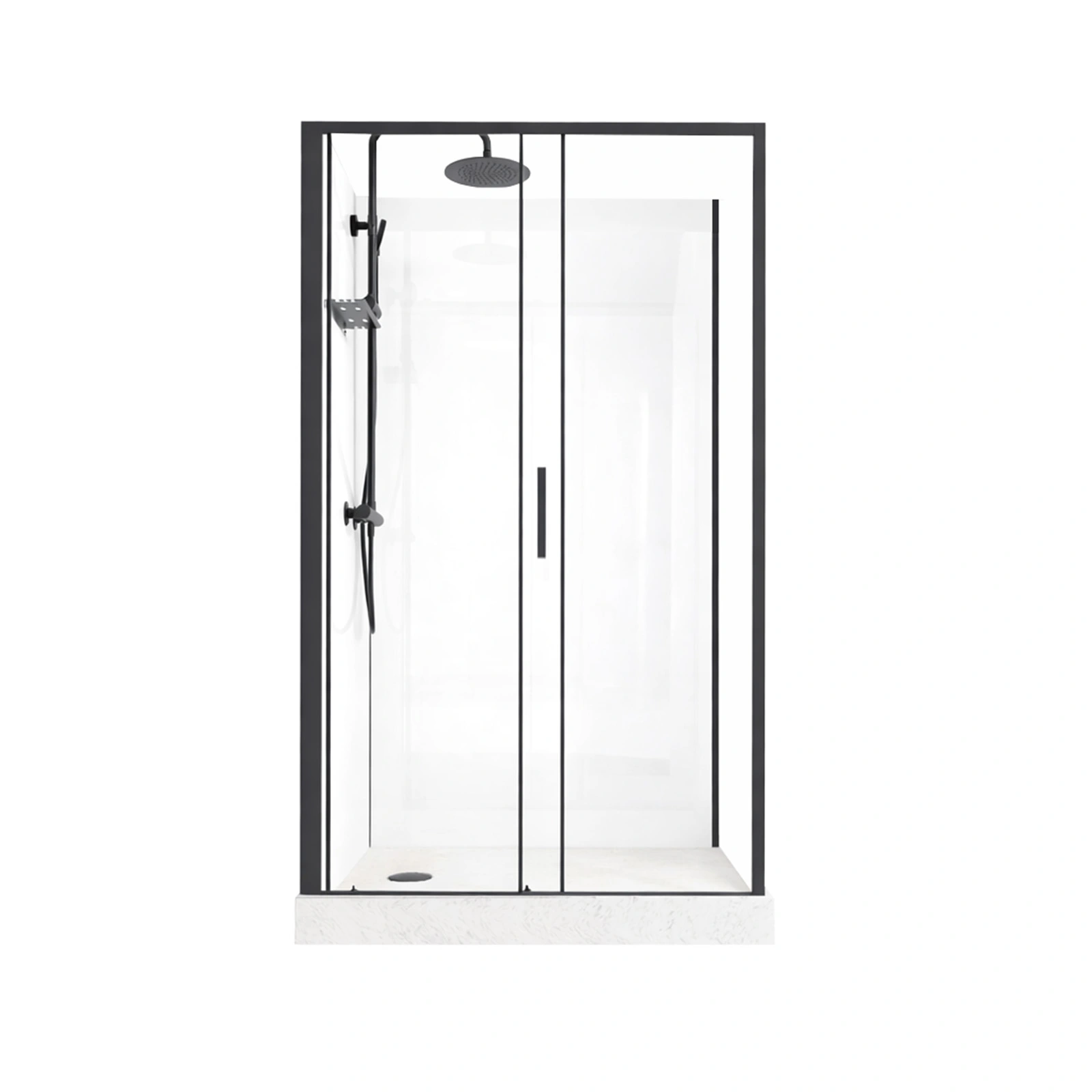 Cabine de douche rectangulaire 110x80x197 cm - Porte coulissante - Fonds Blancs & Profilés Noir Mat