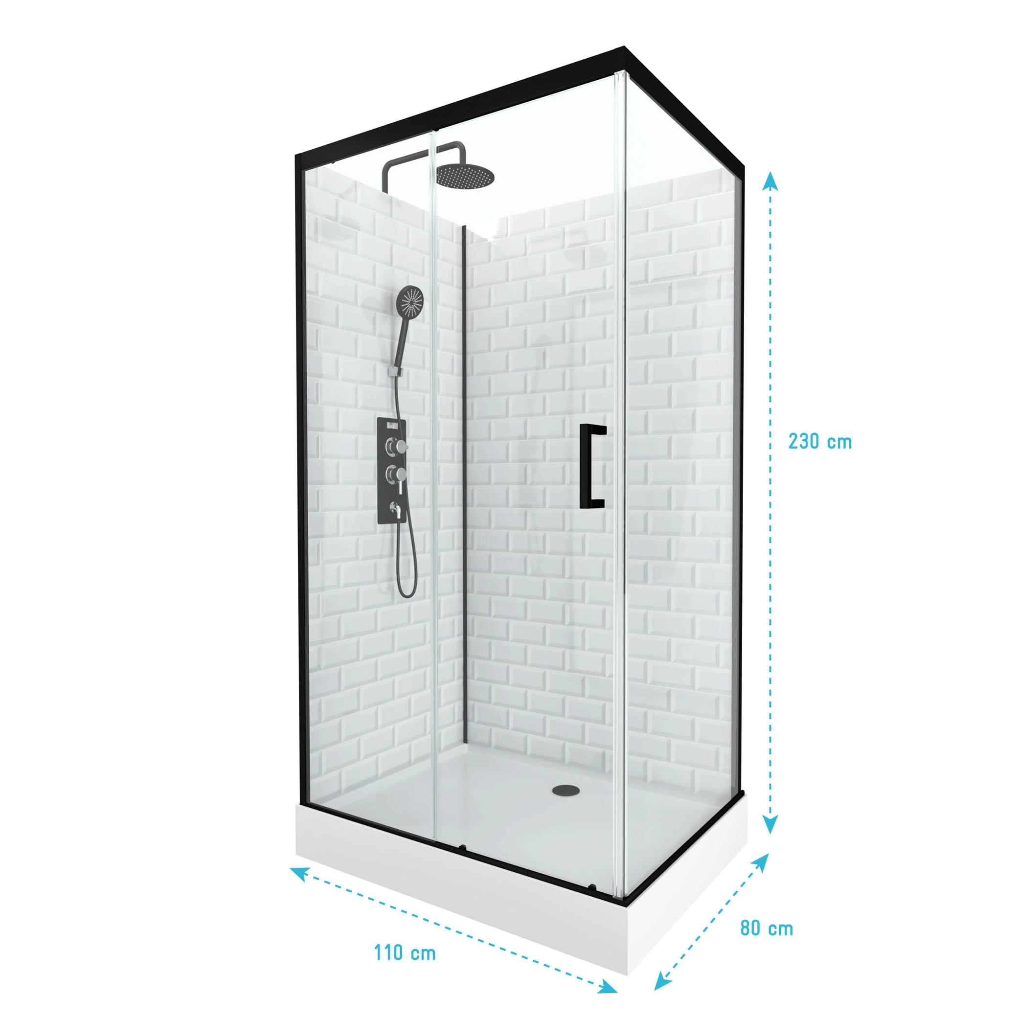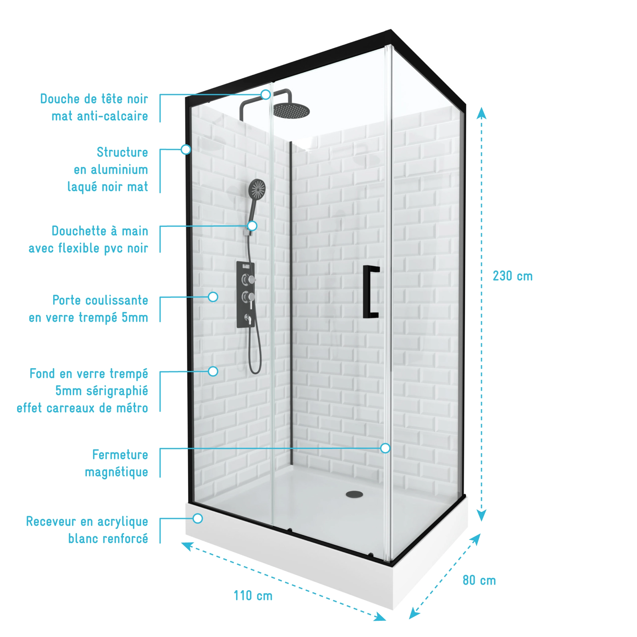 15 avis pour Cabine de douche rectangle 80x110x230cm à motif carreaux de métro – UNDERGROUND RECTANGLE 110