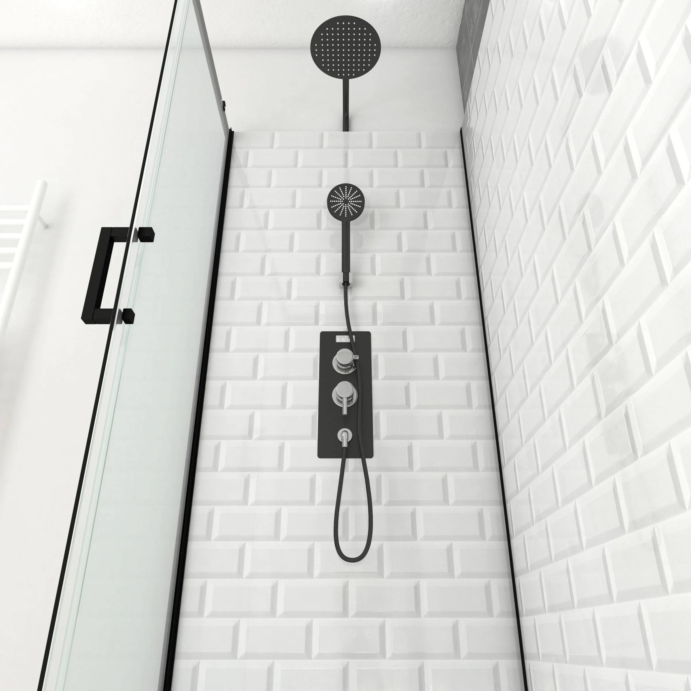 Paroi de Douche 120x200cm - Verre Trempé Transparent 8mm - Profilé Noir