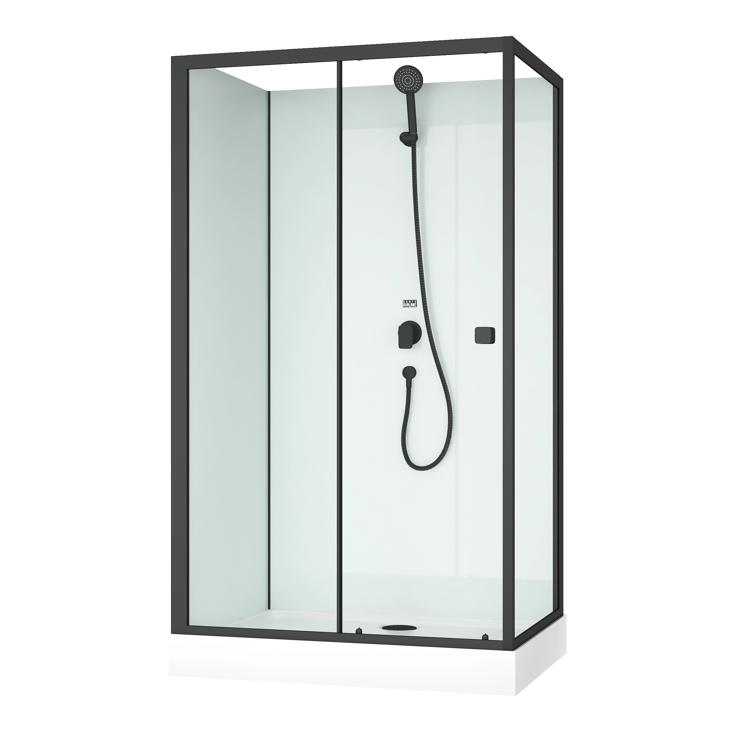 Cabine de douche rectangulaire 110x80x197 cm - Porte coulissante - Fonds Blancs & Profilés Noir Mat