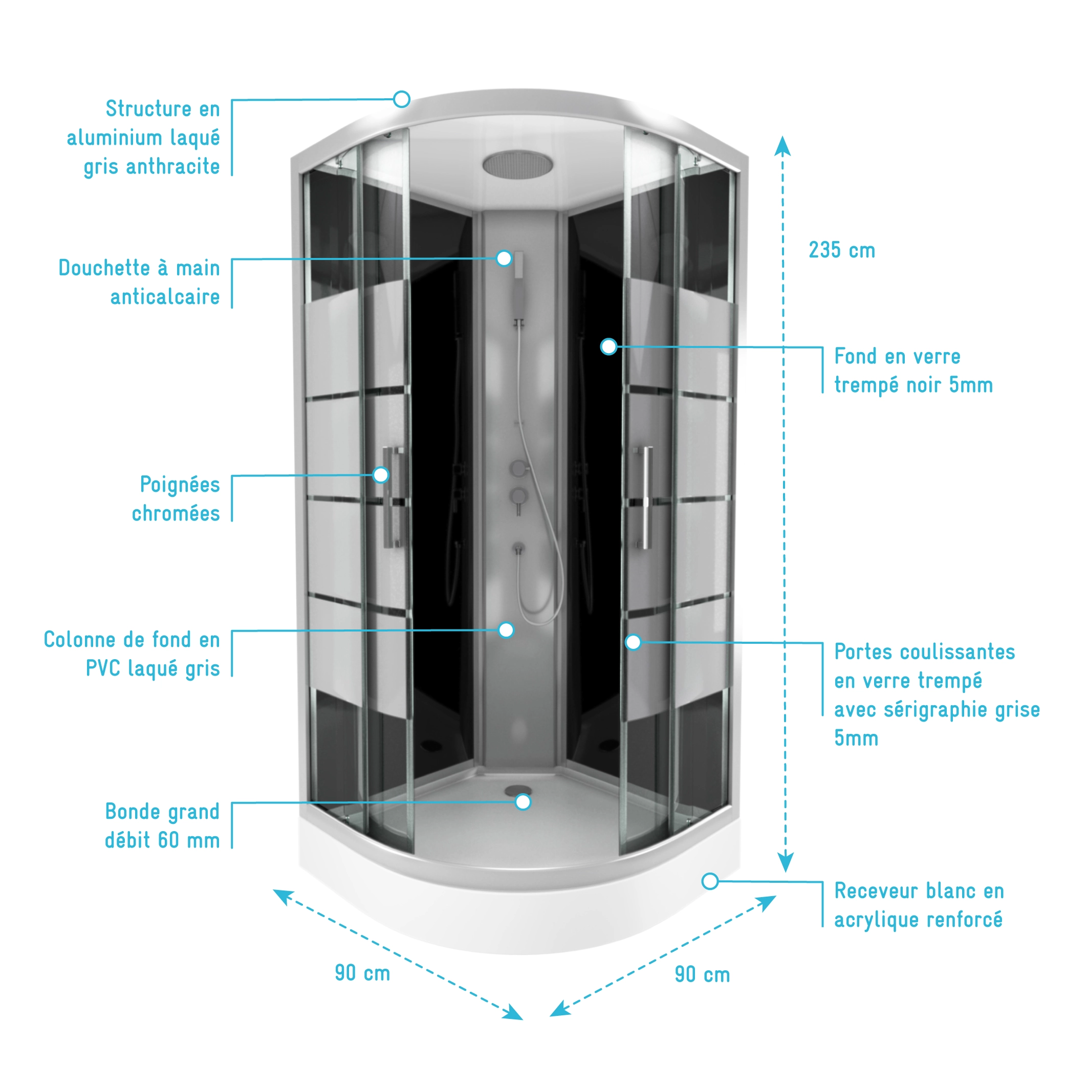 Cabine de douche très bien conçue très agréable entièrement satisfaite !!!