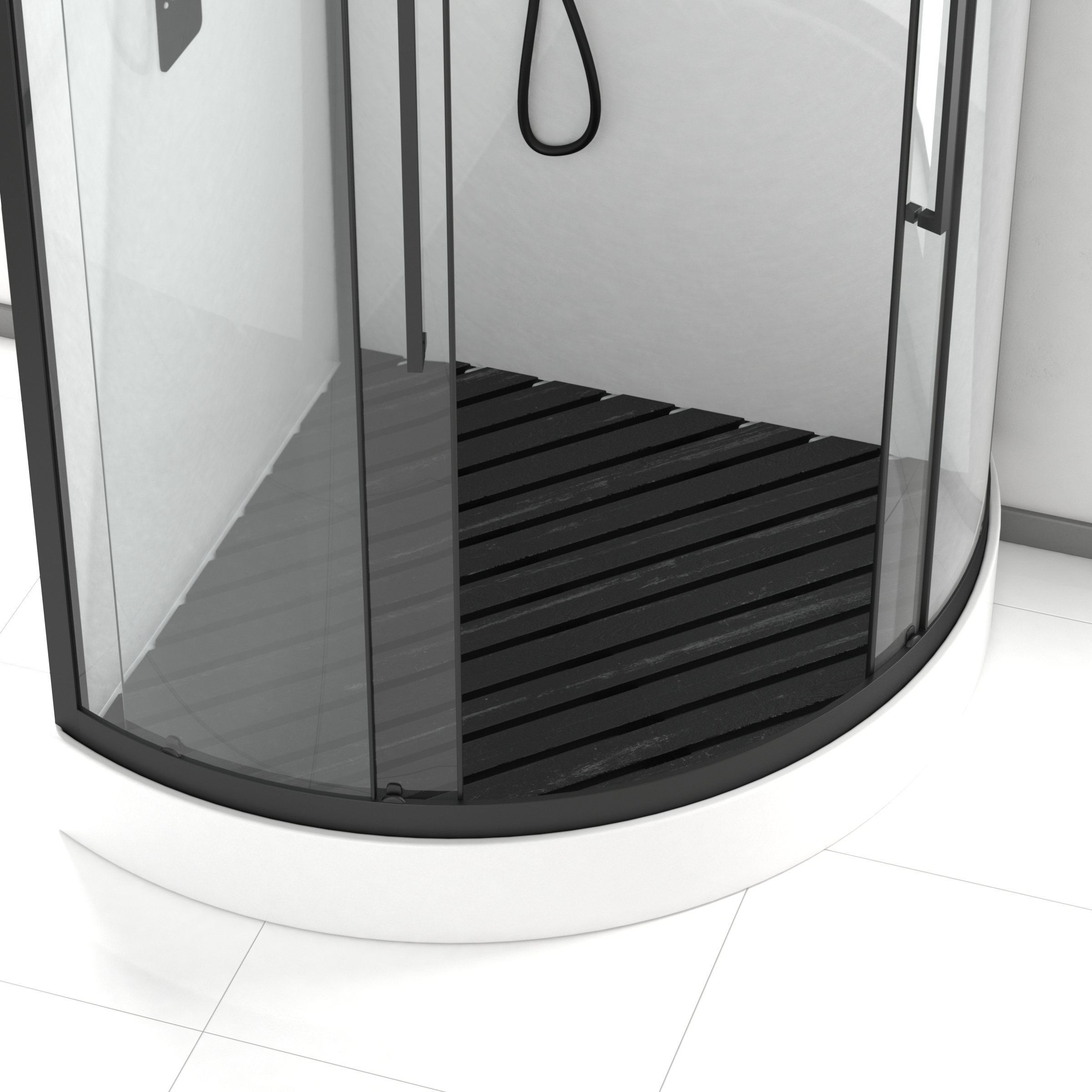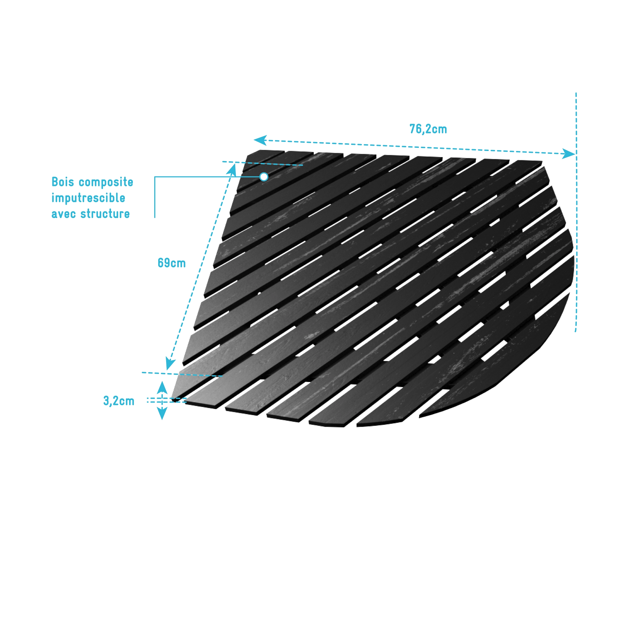 Caillebotis en Bois Composite Gris pour cabine 1/4 de cercle.