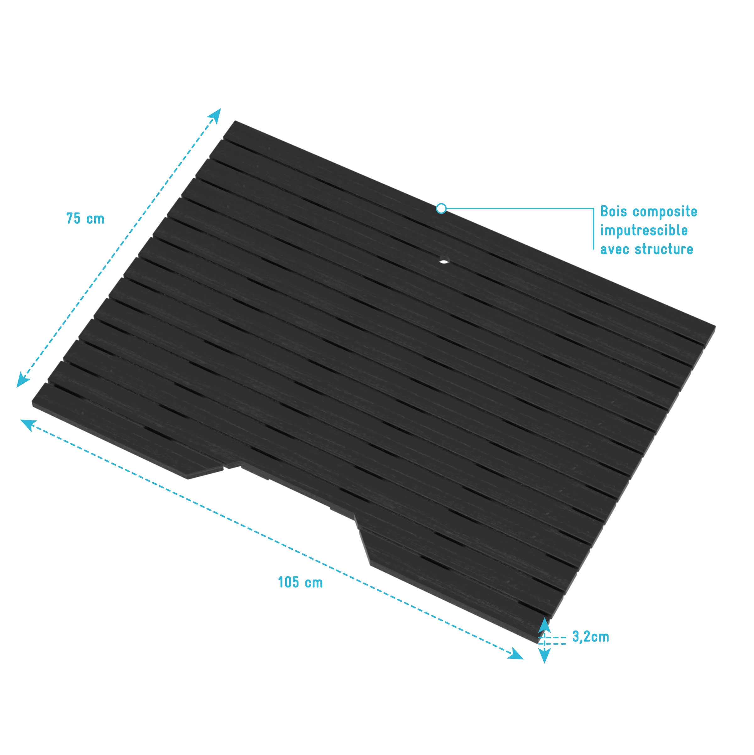 Caillebotis en Bois Composite Gris pour Cabine rectangulaire – Dimensions 105 x 75 x 3.2 cm