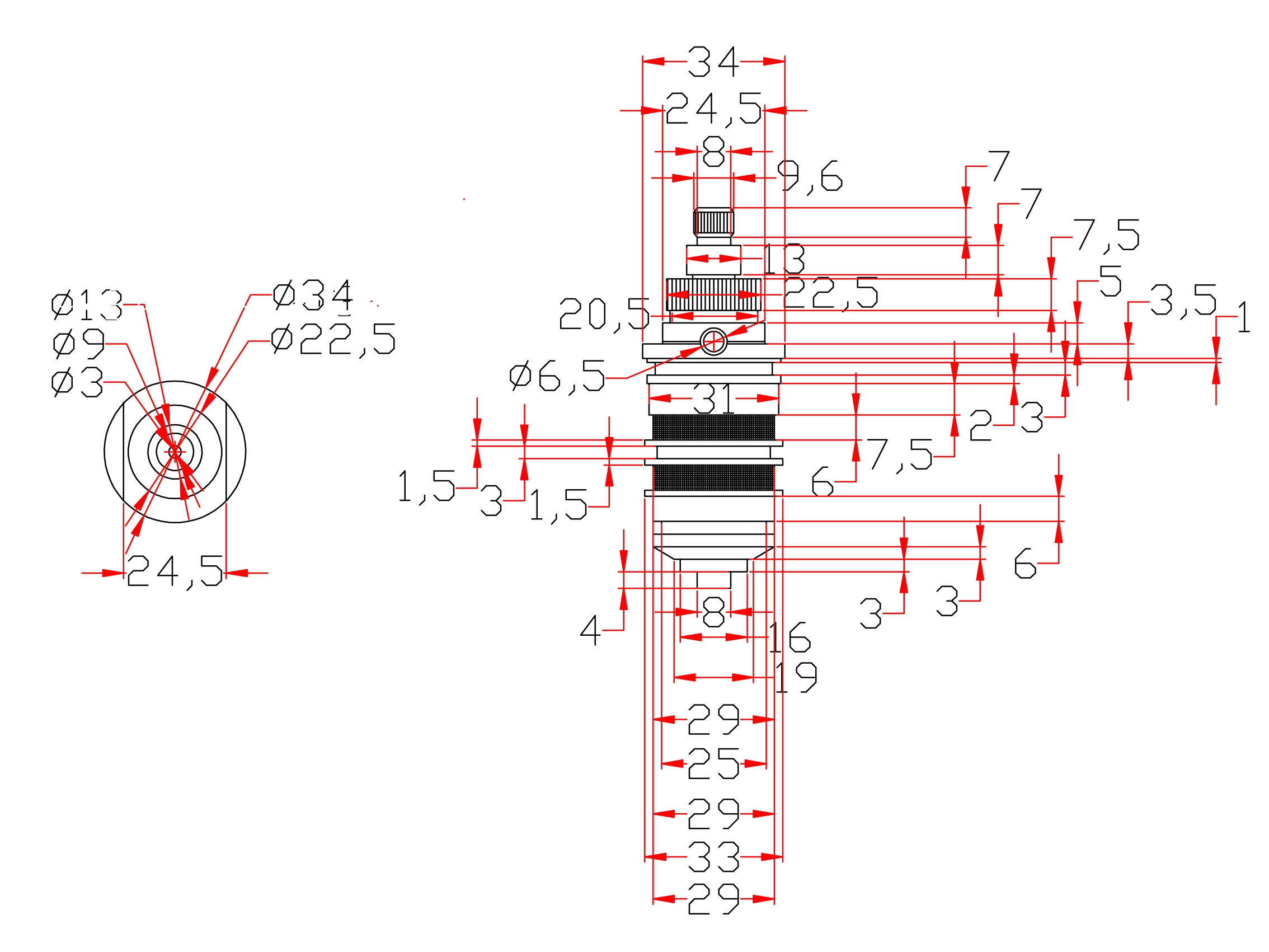 Cartouche thermostatique en métal pour mitigeur de diamètre 3,4cm