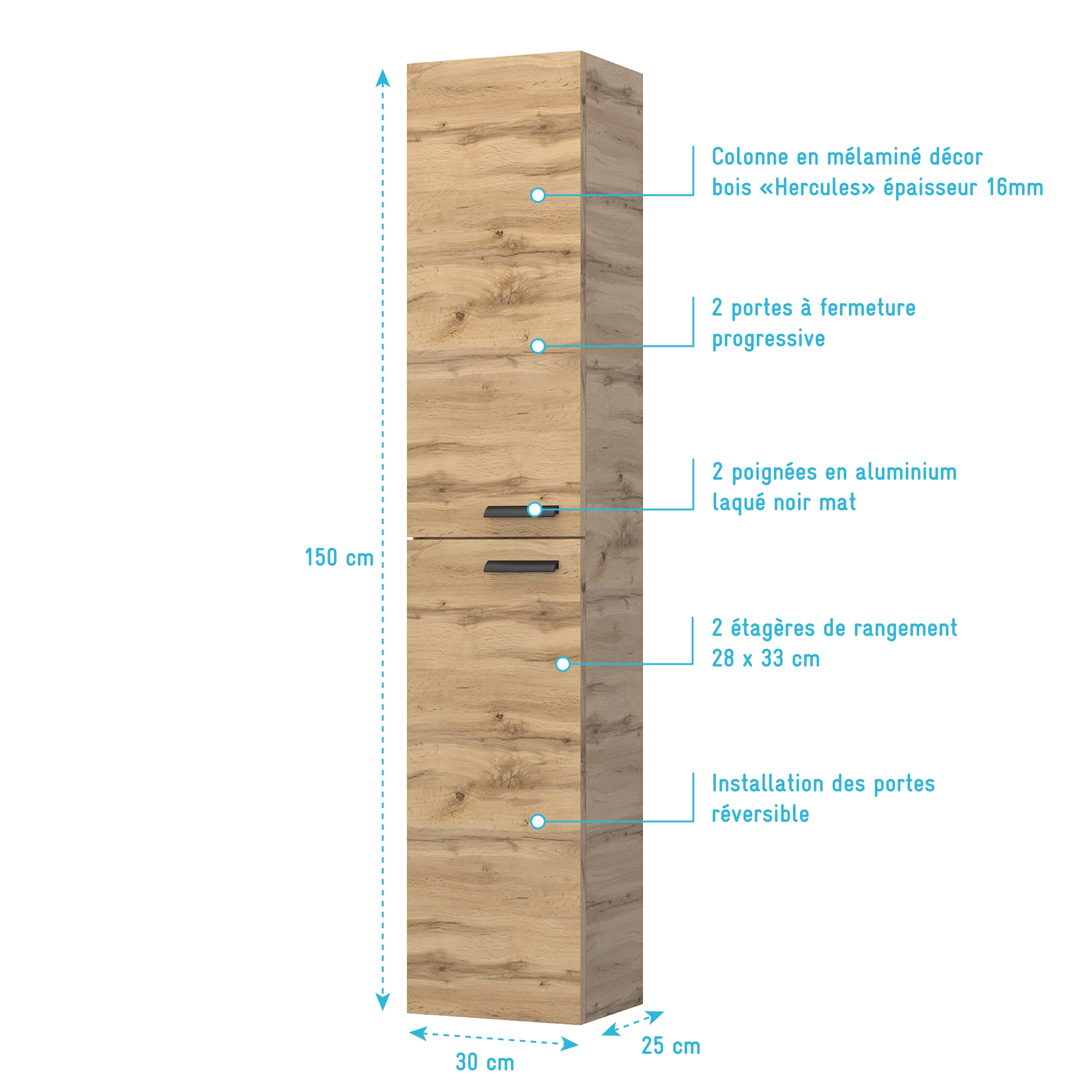 Meuble Colonne de salle de bains en mélaminé décor bois 30x25x150cm – BOX-IN