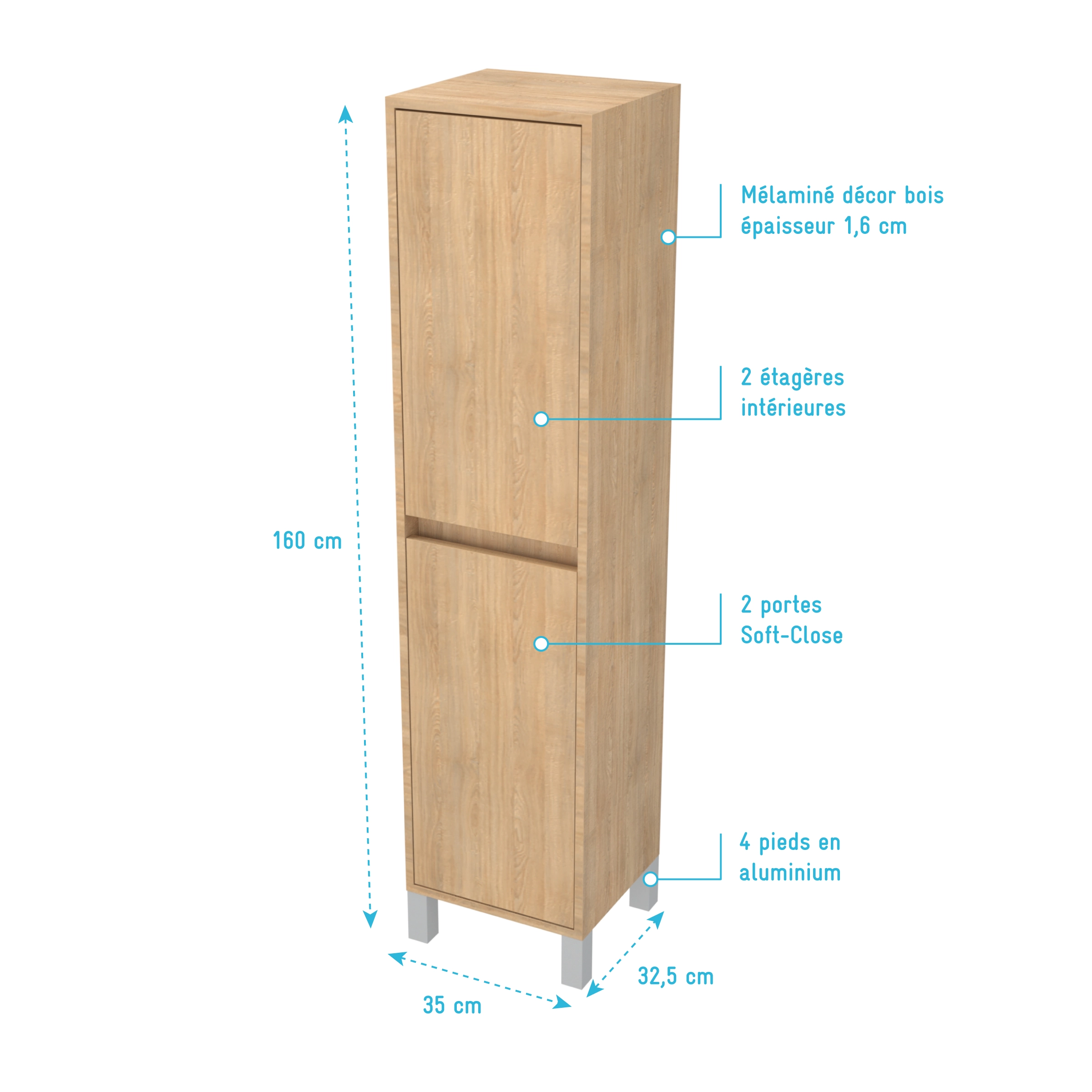 Colonne de rangement Chêne Clair sur Pieds – Hauteur 160 cm – 2 Portes – XENOS