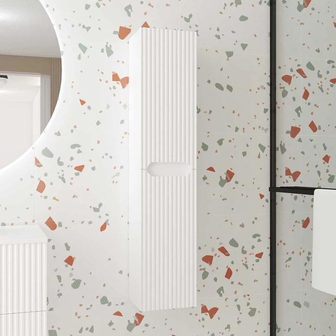 Découvrez notre meuble colonne pour salle de bains blanc aux façades ondulées, une parfaite alliance entre fonctionnalité et style déco audacieux. La collection de colonnes LEON a été conçue pour apporter une touche de fraîcheur et de dynamisme à votre intérieur, avec une variété de coloris disponibles. Les portes ondulées incarnent l’esprit du design contemporain, offrant une esthétique fluide et originale qui saura capter l’attention dans votre salle de bain.