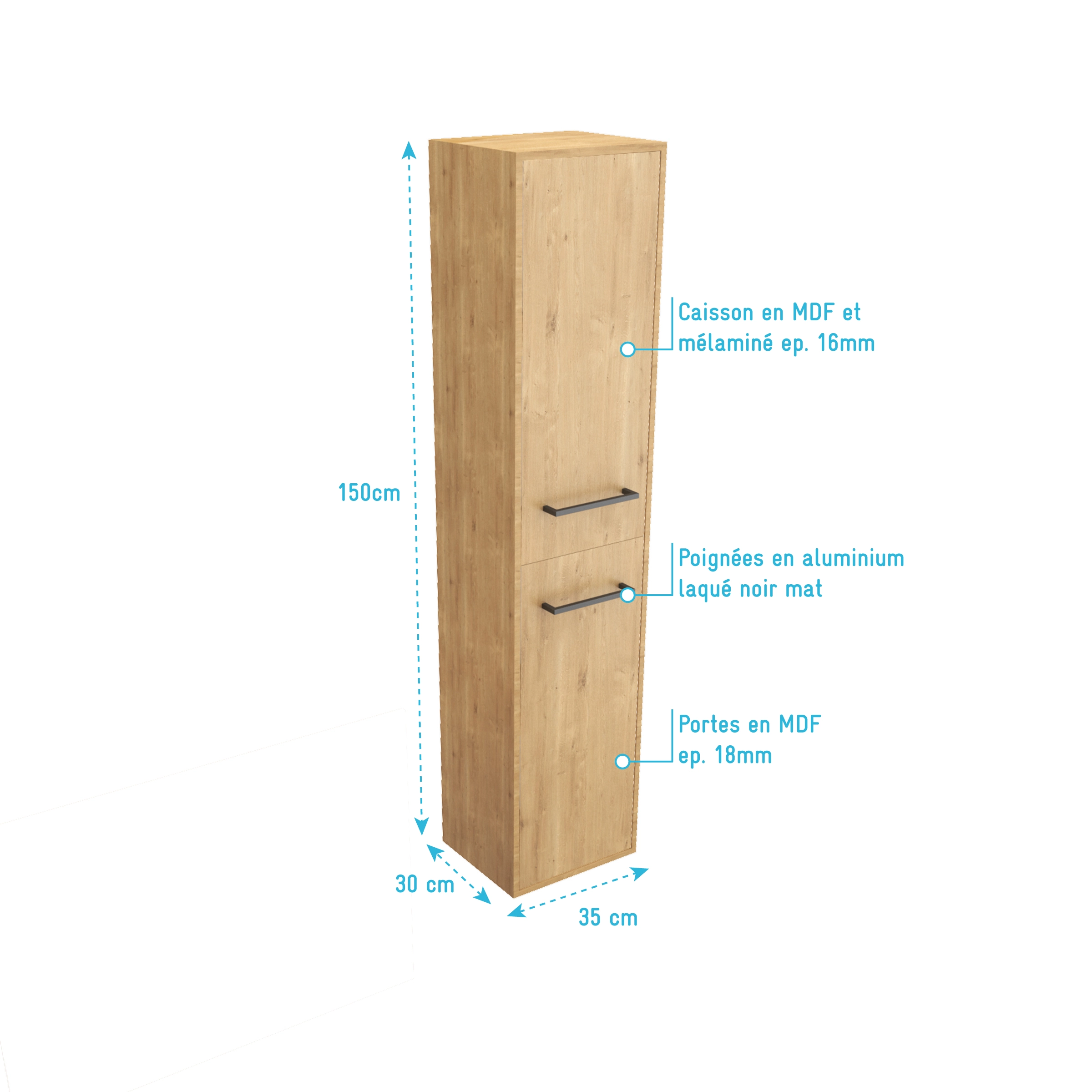 0 avis SWIFT Meuble colonne - 30x150x25cm - Finition chene naturel - SWIFT