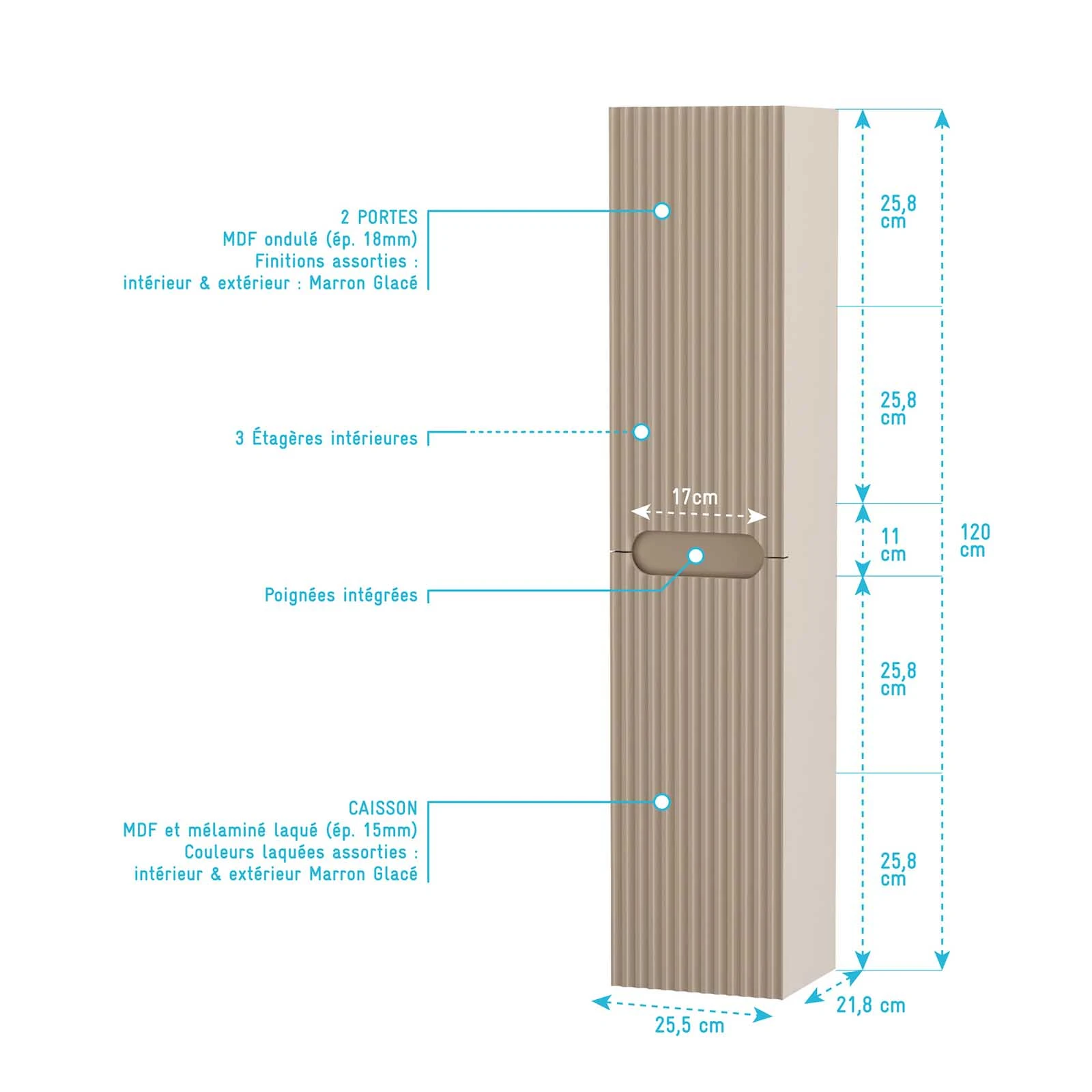 Colonne de salle de bain Marron Glacé Suspendu – Hauteur 120 cm – 2 Portes – LEON