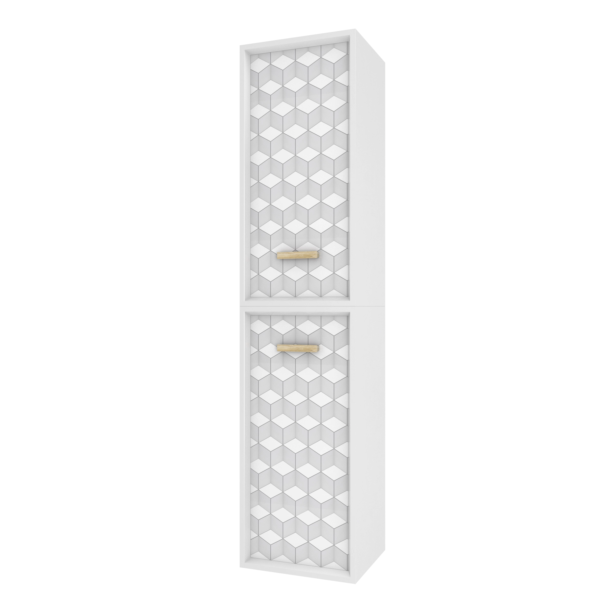 - 2 portes à fermeture progressive finition motifs géométriques (laqué blanc mat et sérigraphie)