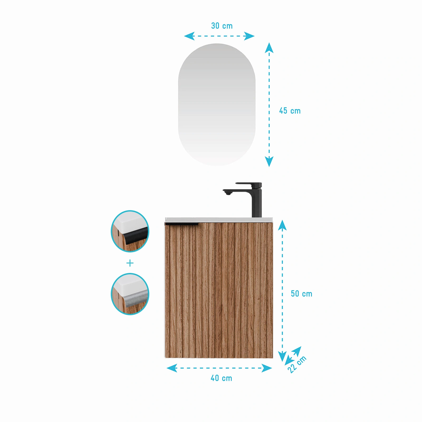 Ensemble meuble lave mains MDF ondulé bois 40x50x22cm et miroir ovale – MILO