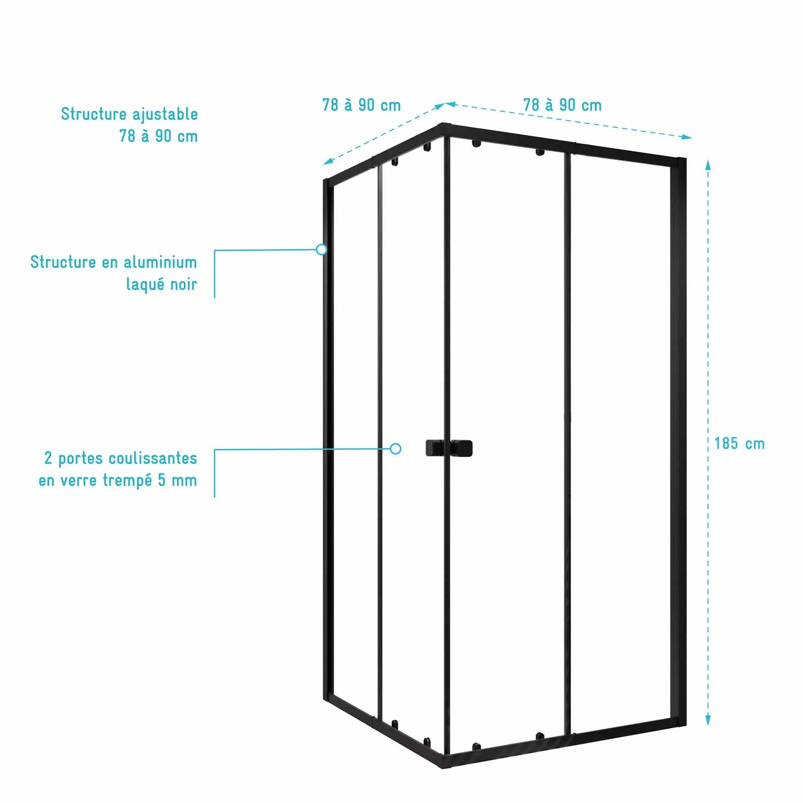 Ensemble portes de douche coulissantes extensibles Noir 80/90x185cm – BLACK SLIDE 80-90