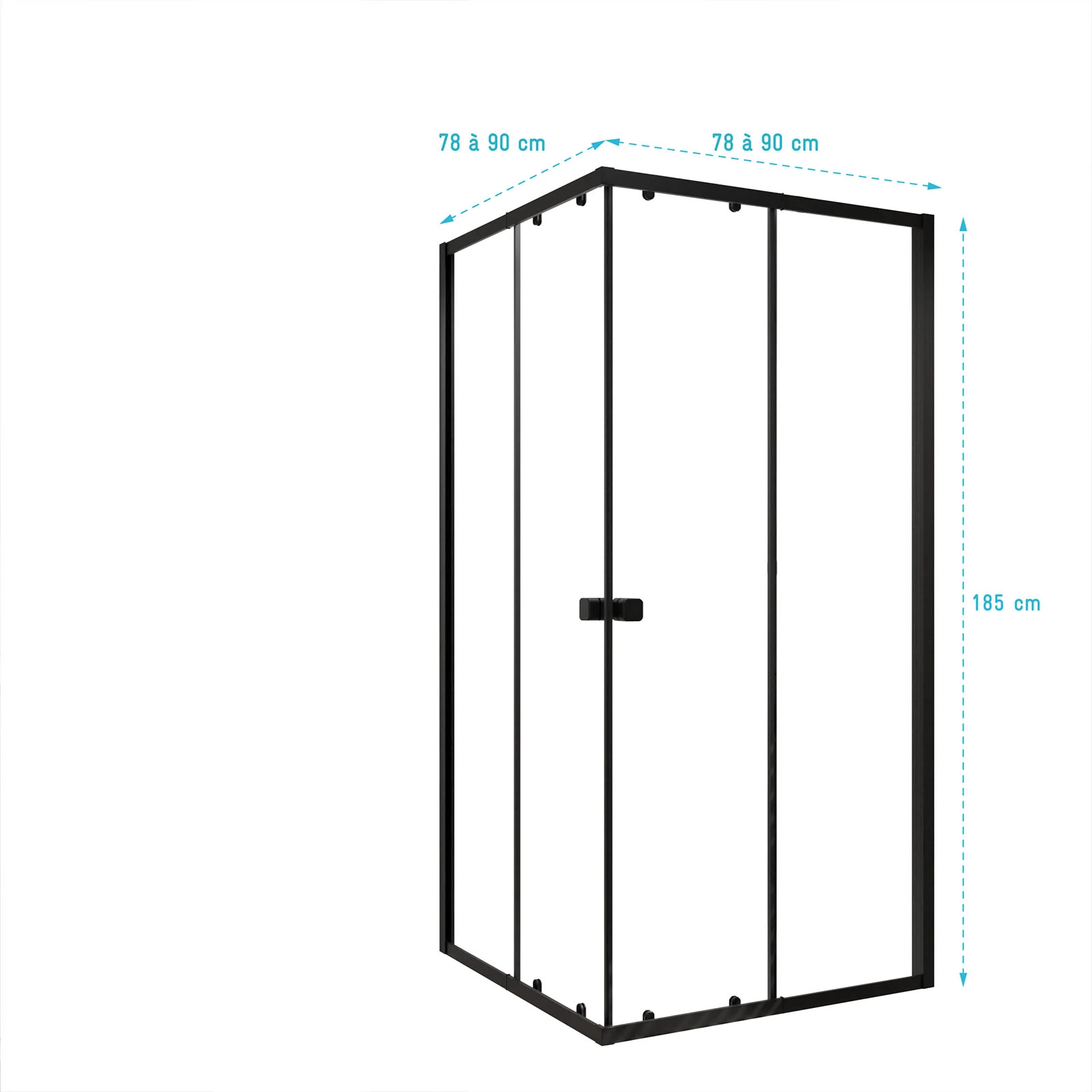 Conçue pour offrir flexibilité et praticité, cet ensemble de portes de douche carré est la solution idéale pour les salles de bain aux dimensions non standards. Grâce à sa structure ajustable de 12 cm (de 78 à 90 cm) de chaque côté, elle s’adapte facilement à vos besoins.