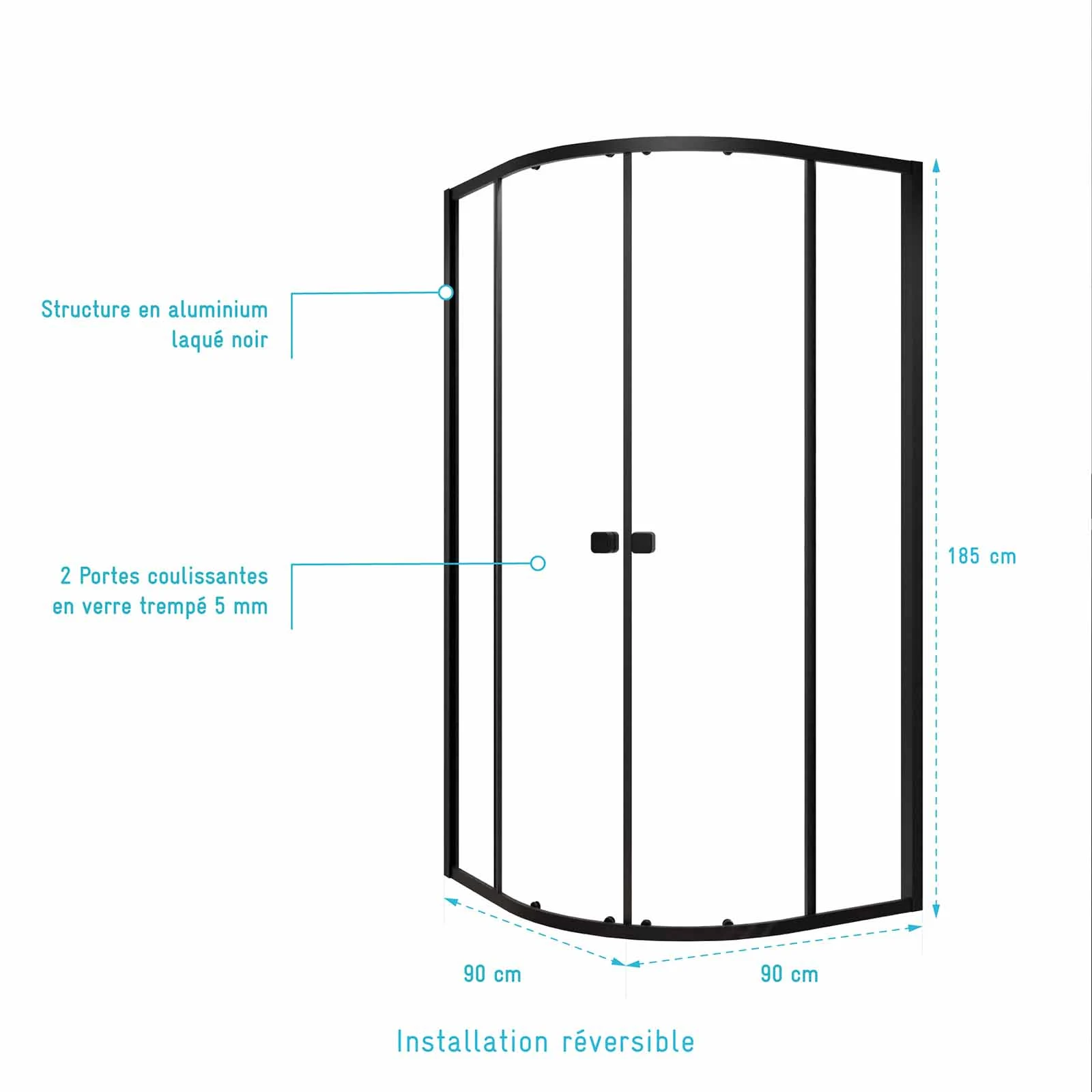 Ensemble portes de douche coulissantes quart de cercle Noir 90x90x185cm – BLACK SLIDE 90