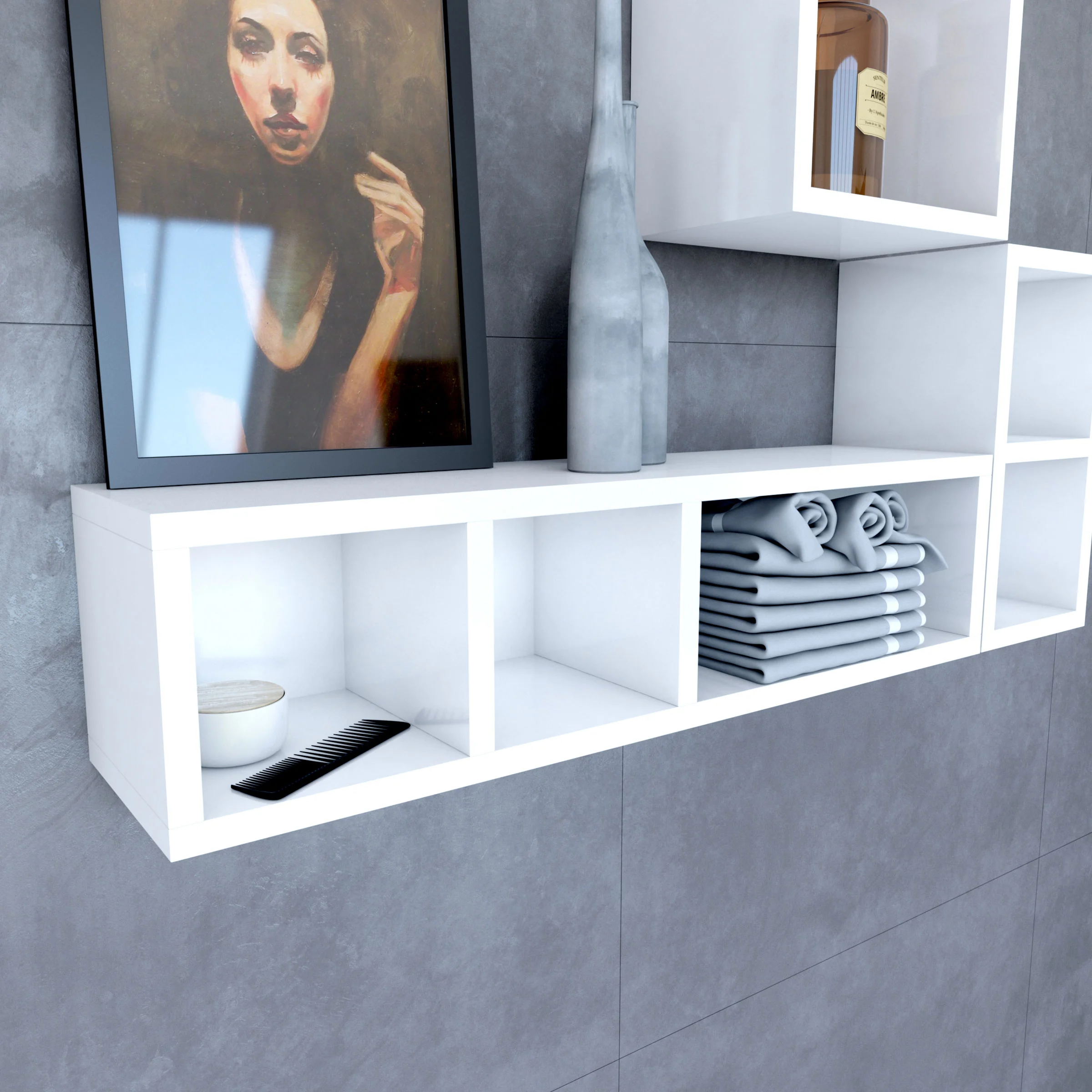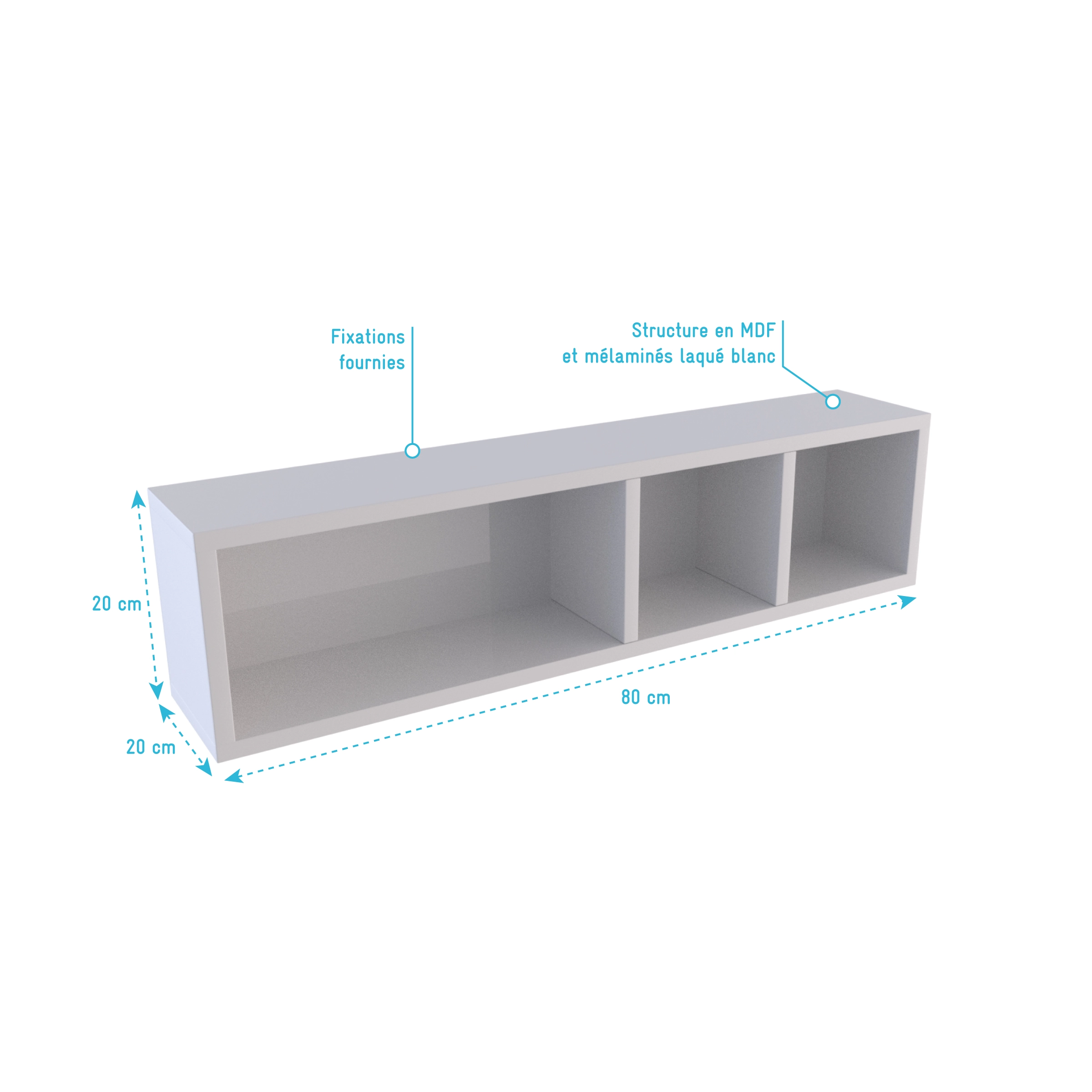 Etagère murale 80x20x20cm blanche de rangement 3 emplacements – PERSONALYZ TRIPLO