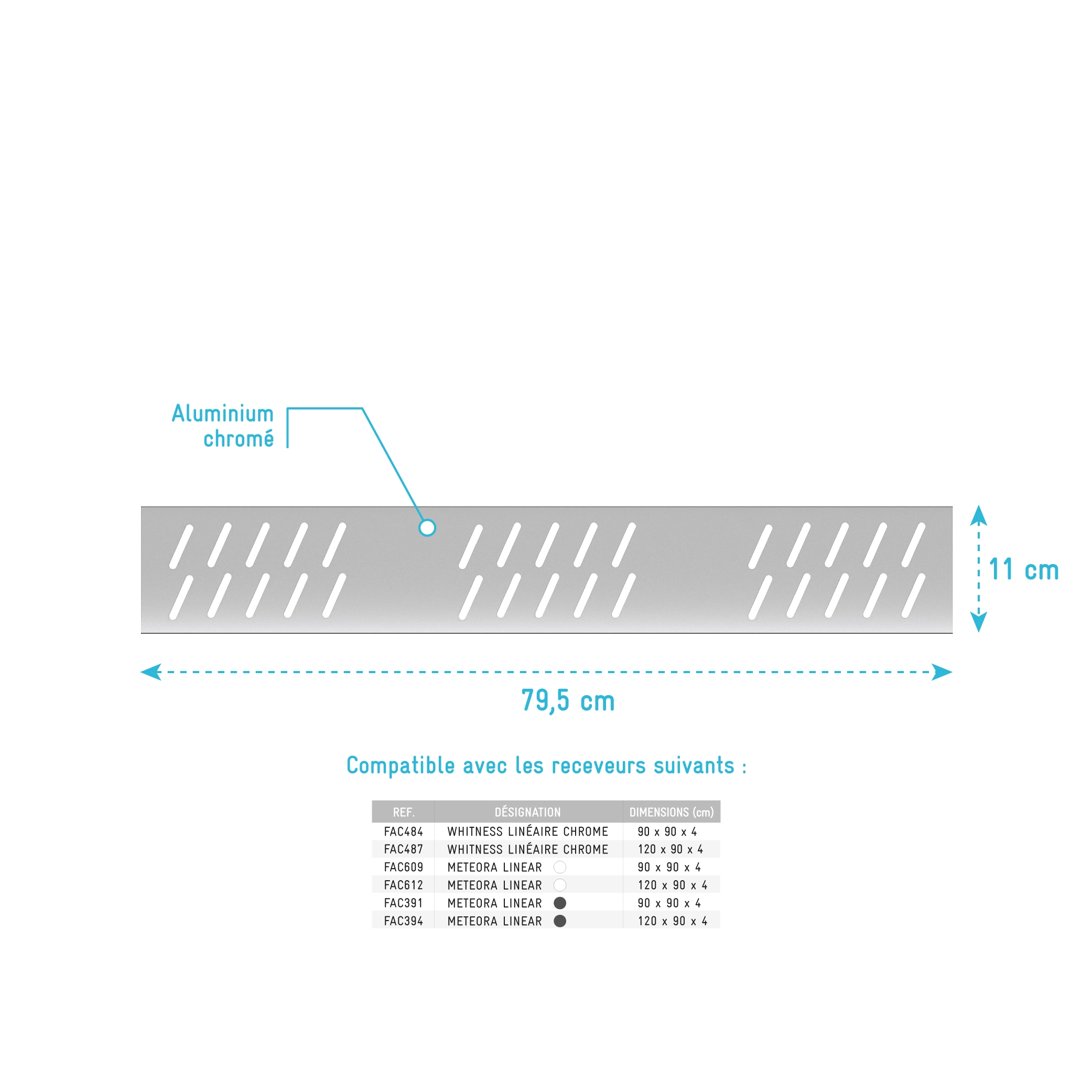 Grille linéaire en Aluminium finition Chrome pour receveur – 79.5x11x0.2cm – GRID LINE CHROME