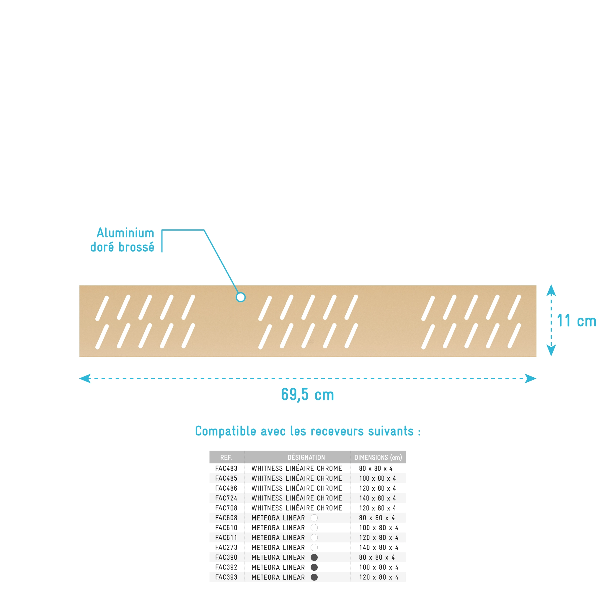 Grille linéaire en Aluminium finition Or Doré Brossé pour receveur – 69.5x11x0.2cm – GRID LINE GOLD