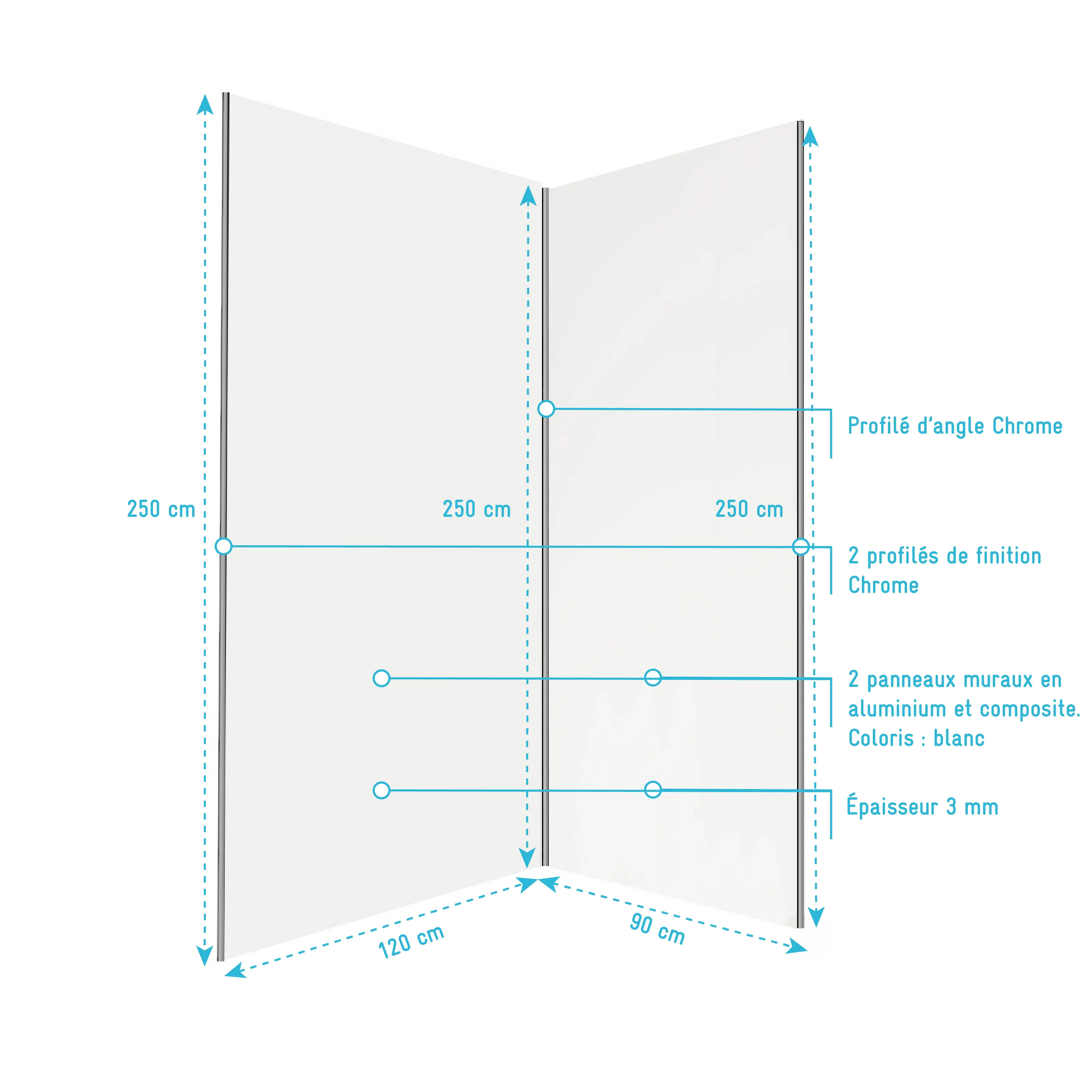 Lot 2 panneaux muraux aluminium Blanc 90 et 120 x 250 cm avec profilés chrome – WALL’IT
