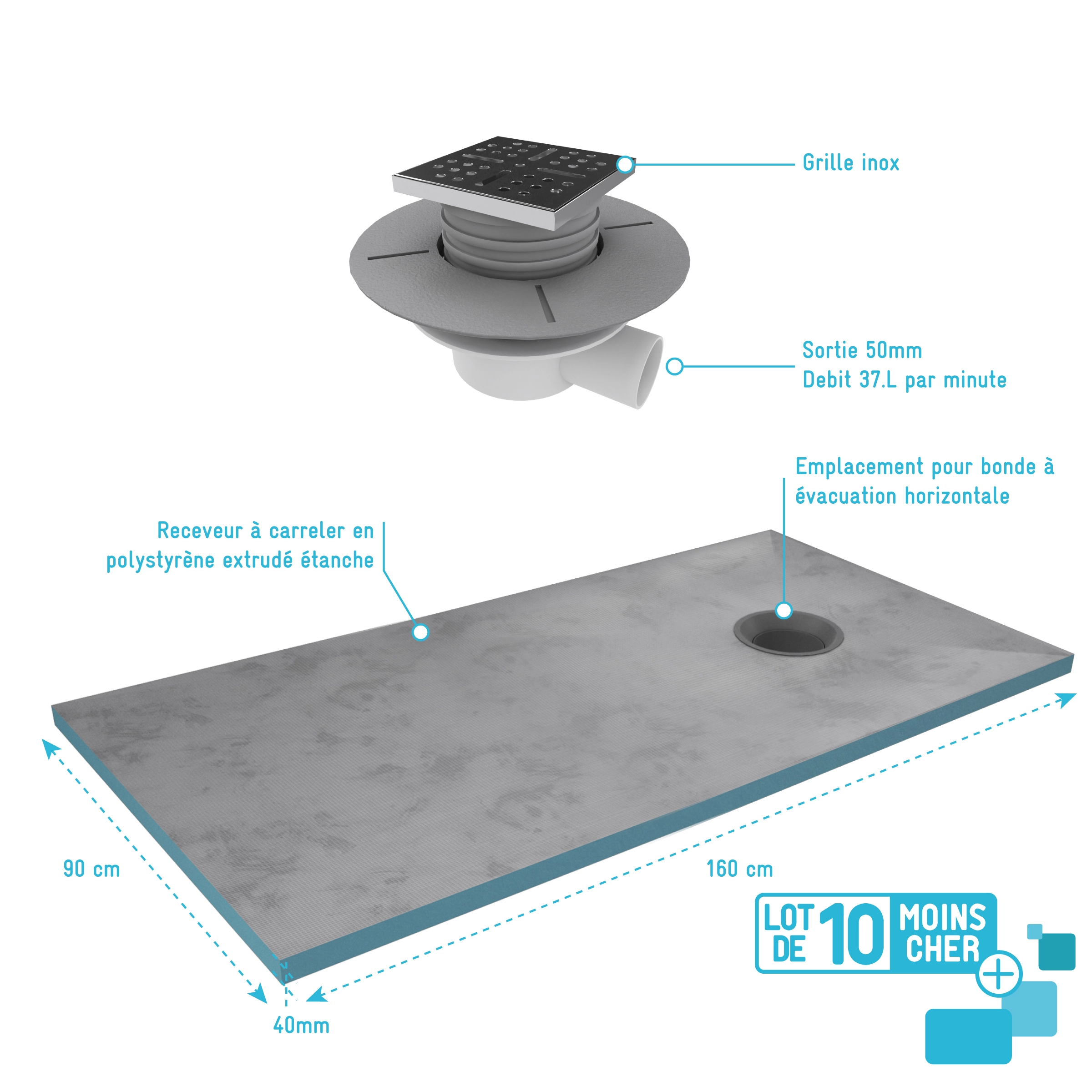 18 avis RAINY Receveur de Douche à Carreler 90x160 cm avec Bondes à Sortie Horizontale - Grille Inox