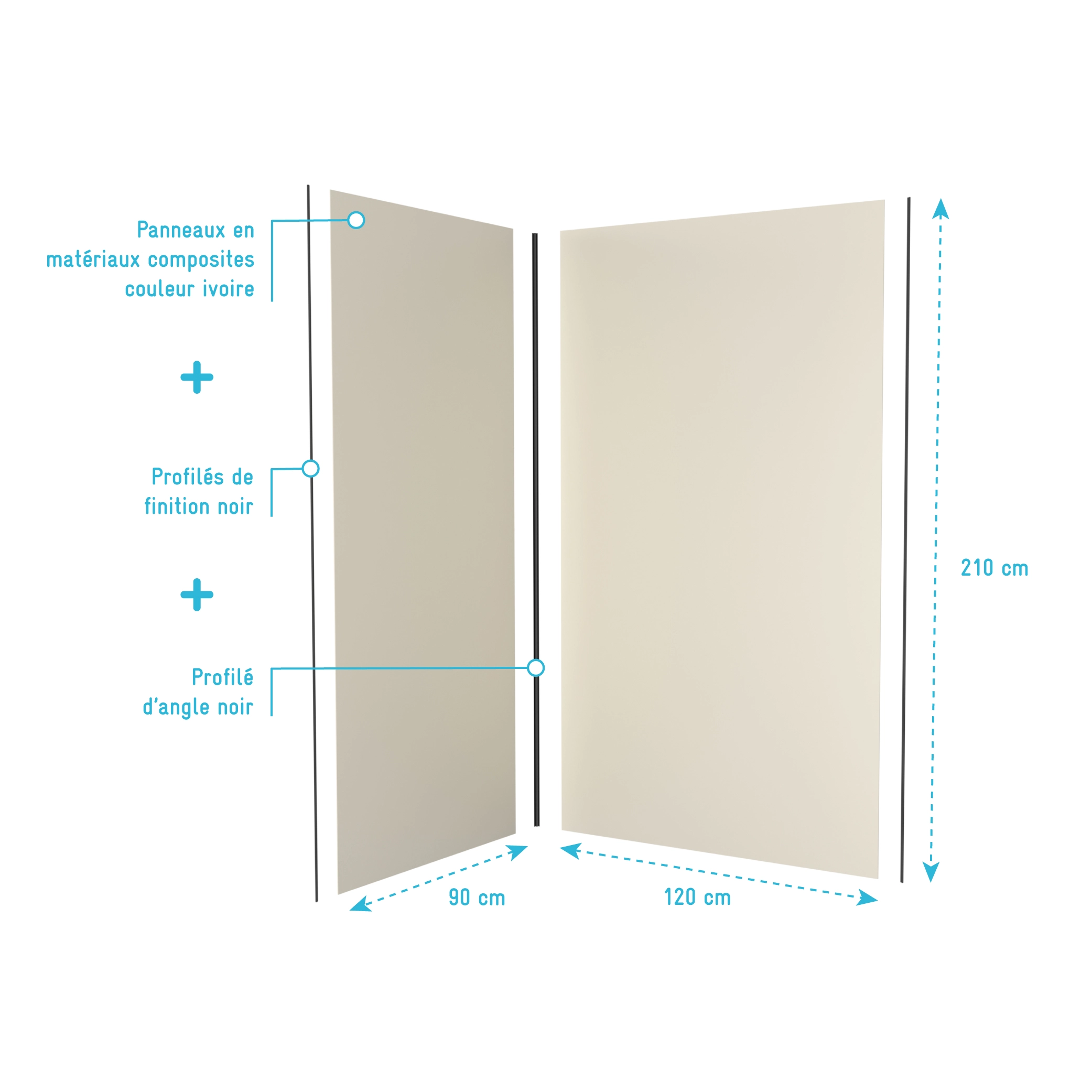 Ce lot de deux panneaux muraux Ivoire s’accompagne d’un profilé d’angle et de deux profilés de finition Noir.